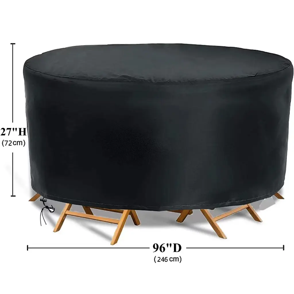Protect your outdoor round table with the Akefit heavy-duty cover, made of 400D Oxford fabric with PU coating. Designed to withstand rain, sun, and snow, it features dual mesh vents for airflow and four buckle straps for wind resistance. A drawstring hem provides a custom fit, while sturdy handles make it easy to remove. Clear mesh windows add visibility and ventilation. Each cover comes with a zippered storage bag and folds compactly for seasonal storage. Compatible with round tables in multiple sizes, this cover keeps your furniture looking new year-round.
