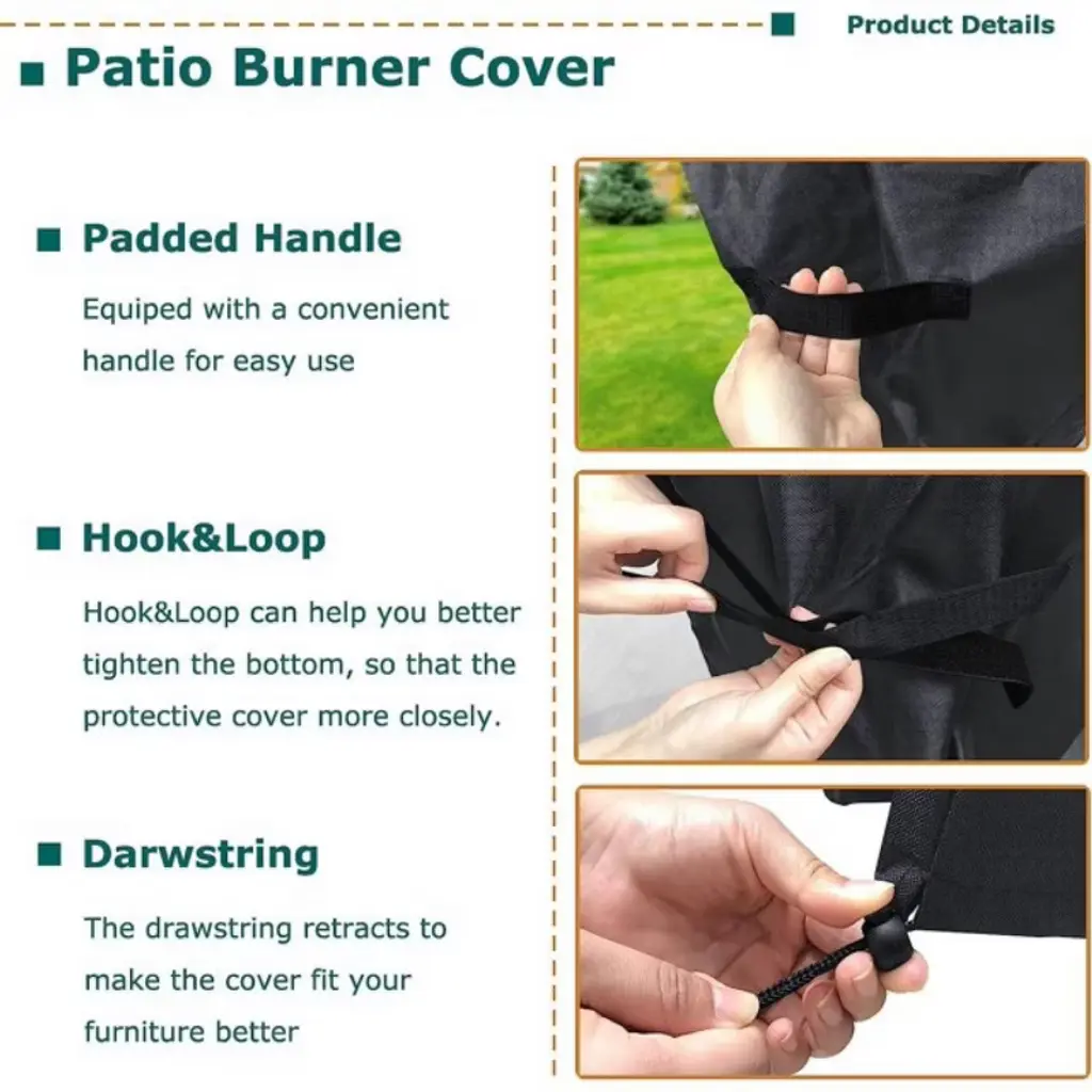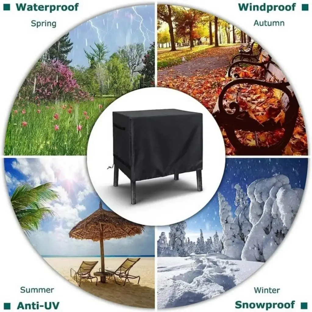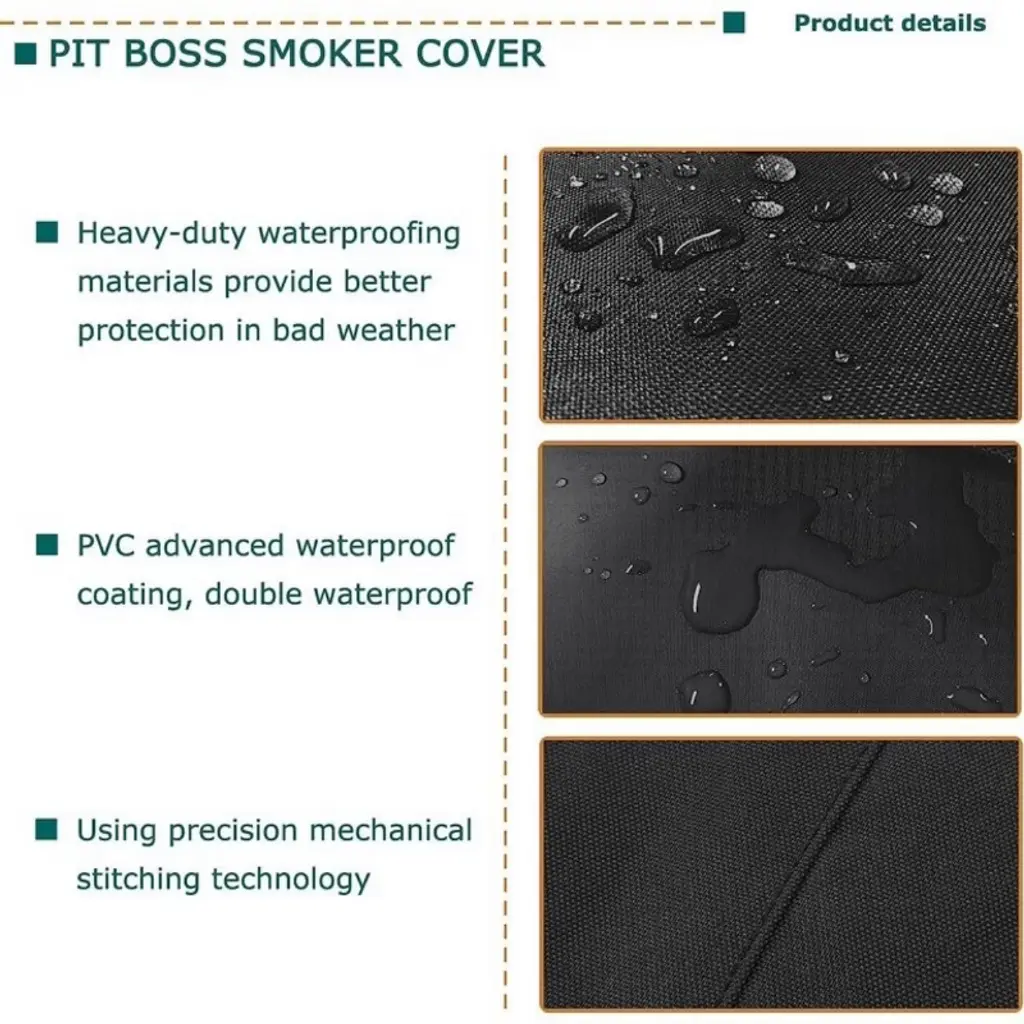 This Akefit BBQ grill cover is made from durable black 600D Oxford fabric with an inner PVC coating for excellent waterproof and weather resistance. It features two sturdy side handles, adjustable Velcro straps, and a drawstring bottom for a snug, secure fit. The included zippered fabric storage bag makes storage and transport convenient and easy.