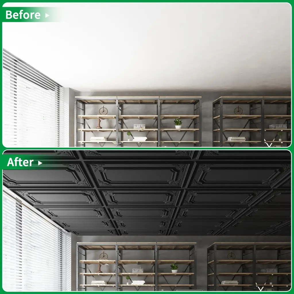 Upgrade your space with our stylish 3D PVC wall and ceiling panels! These lightweight yet durable panels add a contemporary touch to any room, perfect for both residential and commercial interiors.Product Features:✔ Material: High-quality PVC – moisture-resistant, easy to clean, and long-lasting.✔ Size: Each panel measures 24" x 48" (2 ft x 4 ft).✔ Coverage: 1 box = 12 panels = 96 sq. ft. of coverage.✔ Color Options: Classic Black or White – choose the best fit for your décor.✔ Versatile Use: Ideal for walls and ceilings – transform living rooms, bedrooms, offices, and more.Installation Guide:For Walls: Secure with strong adhesive glue (not included).For Ceilings:Attach with adhesive glue (not included), ORMount onto a pre-installed grid framework (framework not included).⚠ Note: Adhesive glue and installation tools must be purchased separately.Why Choose Our 3D Panels?✅ Easy to install – No heavy tools required.✅ Lightweight & flexible – Simple to cut and shape as needed.✅ Enhances acoustics – Helps reduce noise in open spaces.✅ Low maintenance – Wipe clean with a damp cloth.