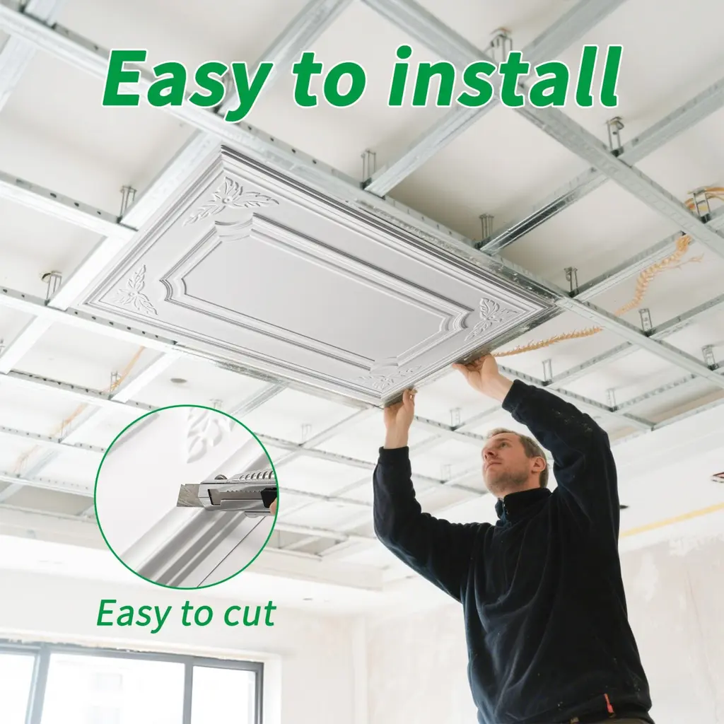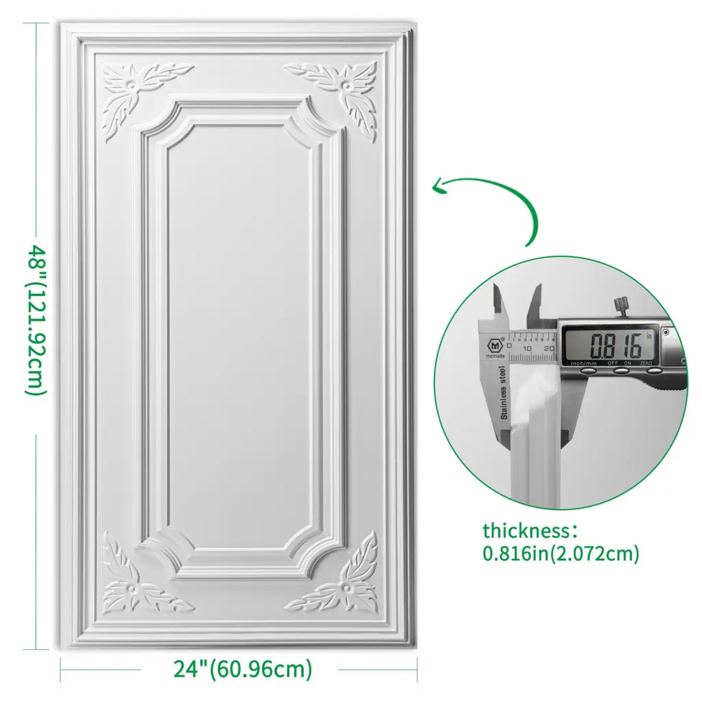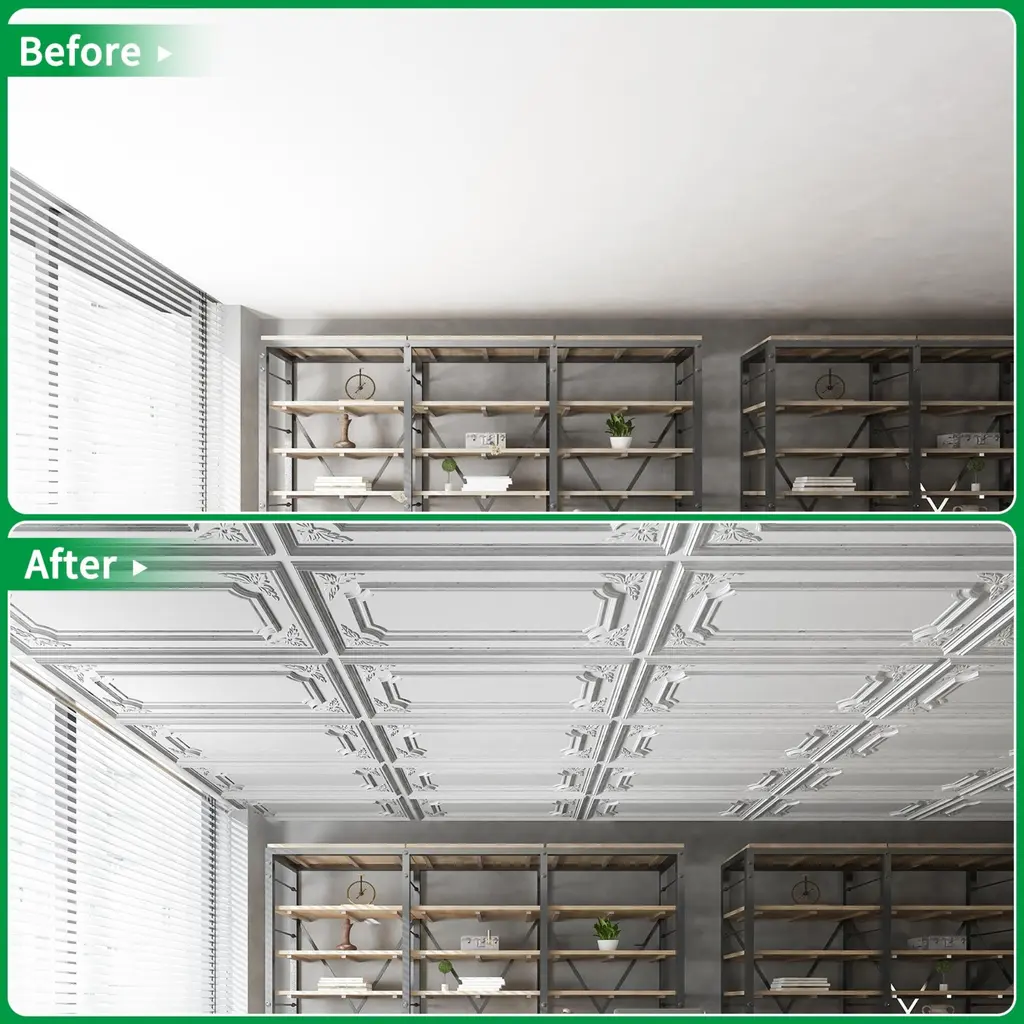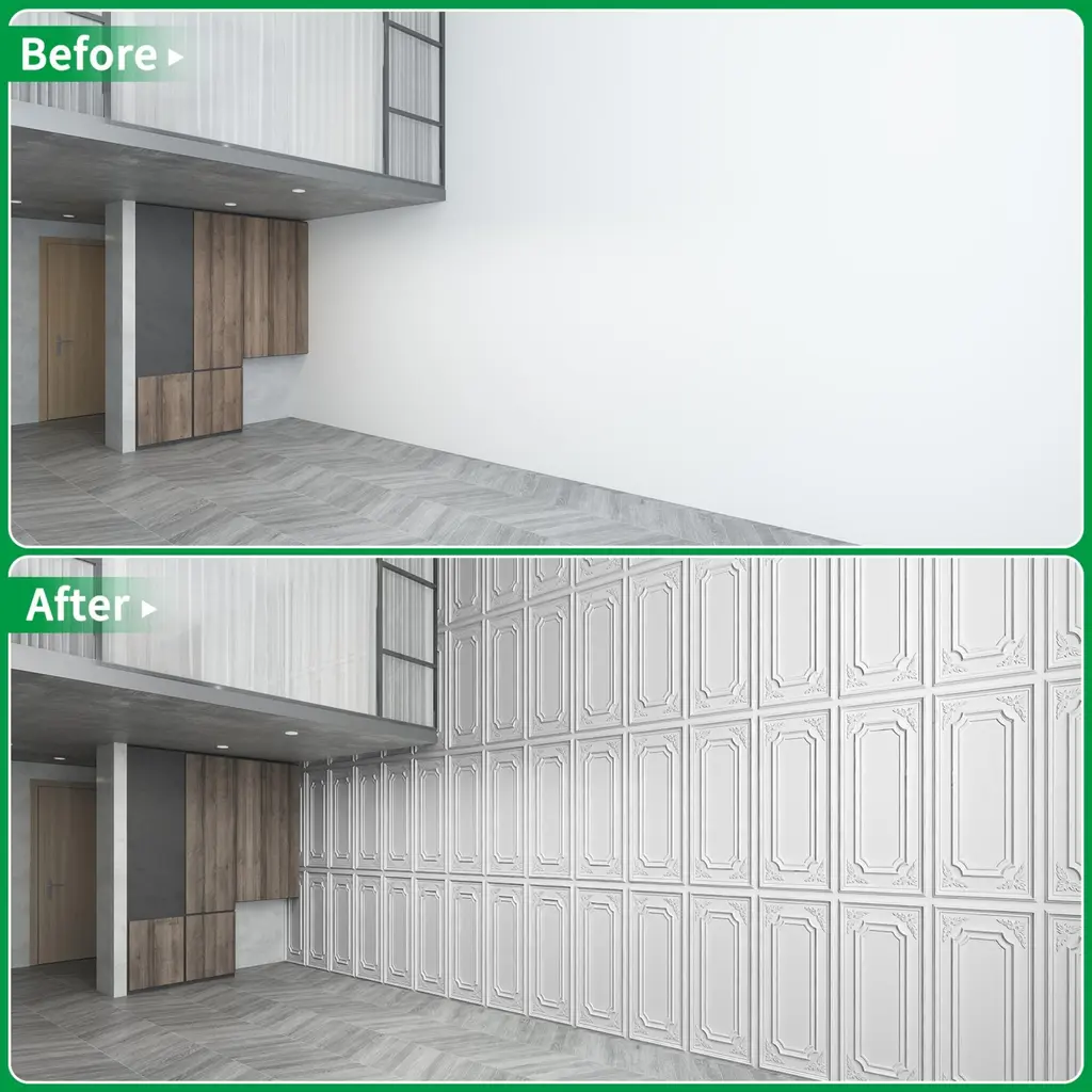 Upgrade your space with our stylish 3D PVC wall and ceiling panels! These lightweight yet durable panels add a contemporary touch to any room, perfect for both residential and commercial interiors.Product Features:✔ Material: High-quality PVC – moisture-resistant, easy to clean, and long-lasting.✔ Size: Each panel measures 24" x 48" (2 ft x 4 ft).✔ Coverage: 1 box = 12 panels = 96 sq. ft. of coverage.✔ Color Options: Classic Black or White – choose the best fit for your décor.✔ Versatile Use: Ideal for walls and ceilings – transform living rooms, bedrooms, offices, and more.Installation Guide:For Walls: Secure with strong adhesive glue (not included).For Ceilings:Attach with adhesive glue (not included), ORMount onto a pre-installed grid framework (framework not included).⚠ Note: Adhesive glue and installation tools must be purchased separately.Why Choose Our 3D Panels?✅ Easy to install – No heavy tools required.✅ Lightweight & flexible – Simple to cut and shape as needed.✅ Enhances acoustics – Helps reduce noise in open spaces.✅ Low maintenance – Wipe clean with a damp cloth.