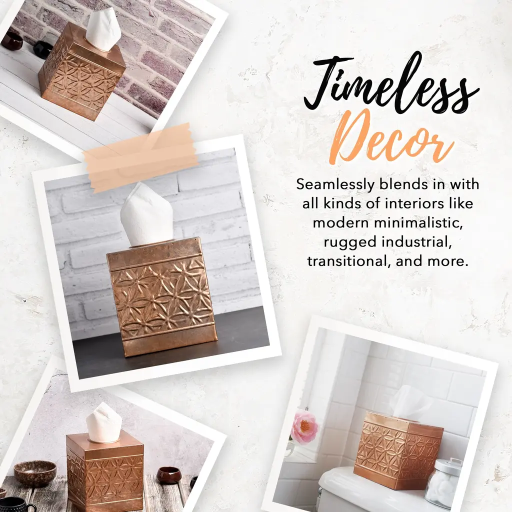 Autumn Alley Farmhouse Jamie Line Galvanized Metal Square Tissue Box Cover - Floral Embossed, Galvanized, Black, White, Copper - Copper Colored