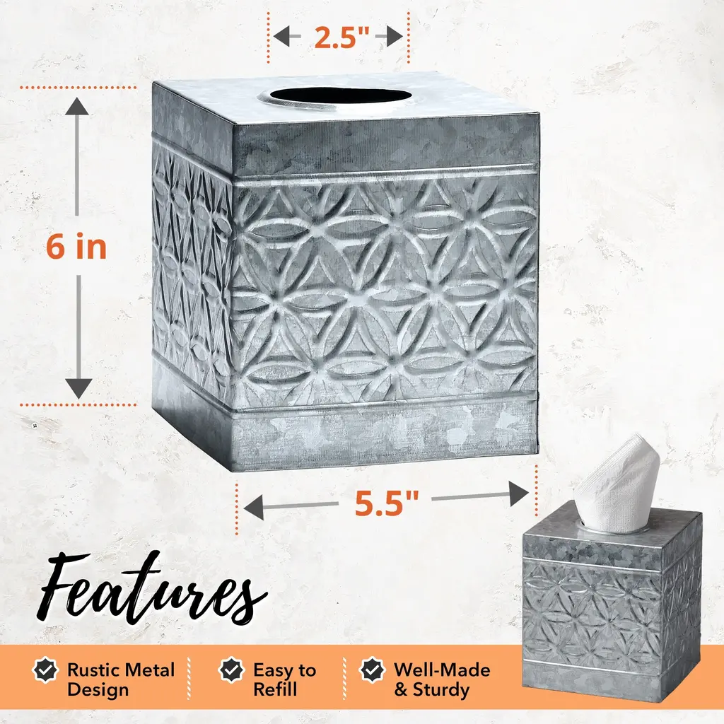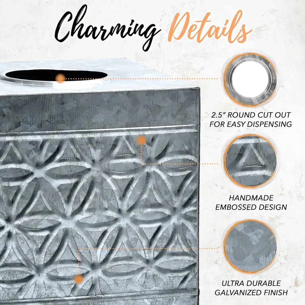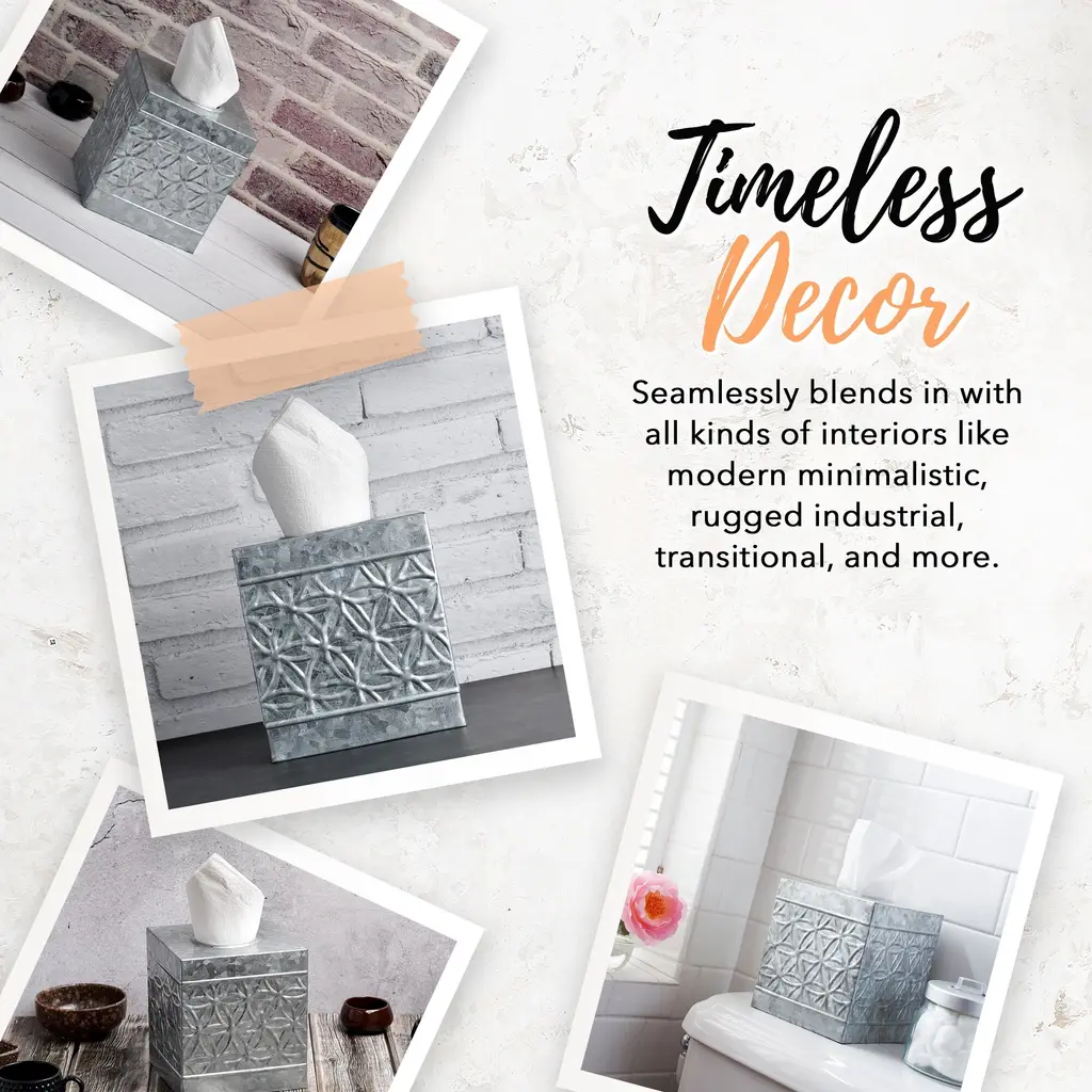 Autumn Alley Farmhouse Jamie Line Galvanized Metal Square Tissue Box Cover - Floral Embossed, Galvanized, Black, White, Copper - Galvanized Gray