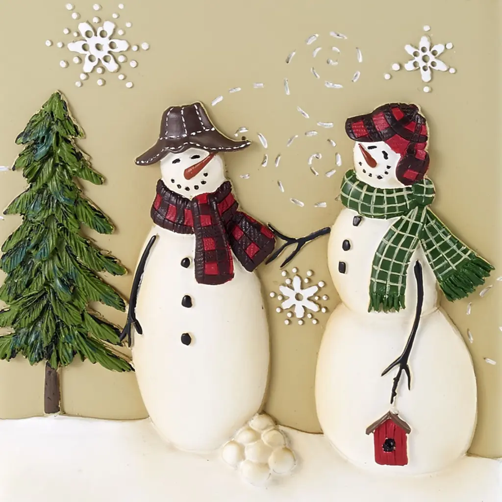 The Avanti Snowmen Gathering Tissue Cover features raised snowmen with a pine tree and snowflakes on a tan background. The white snow base wraps around all 4 sides. Crafted in hand-painted resin. Coordinating accessories, shower curtain, rug and towels also available.