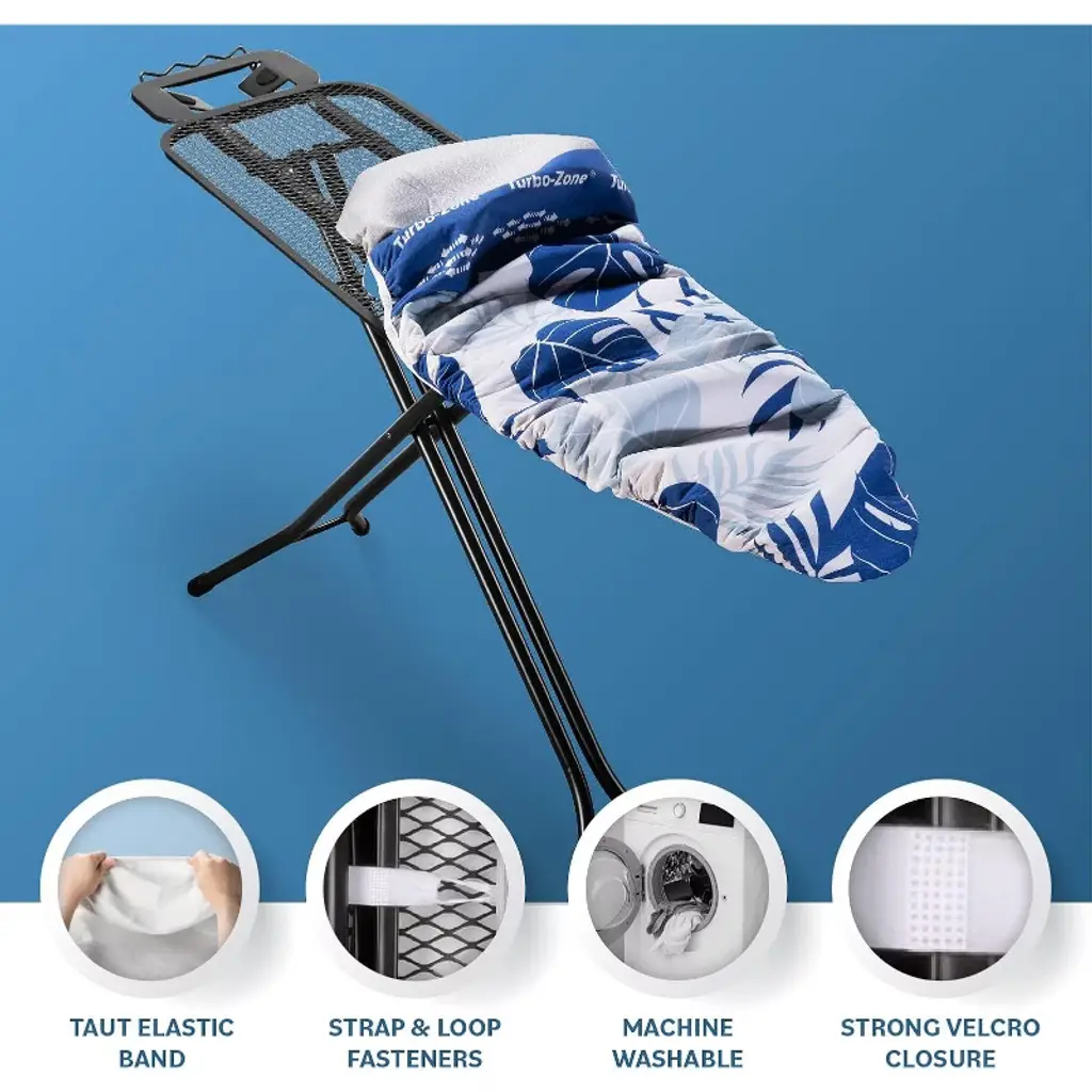 Bartnelli 43"x13" Patent Ironing Board Cover And Pad, 2 Looped Straps, Floral Blue
