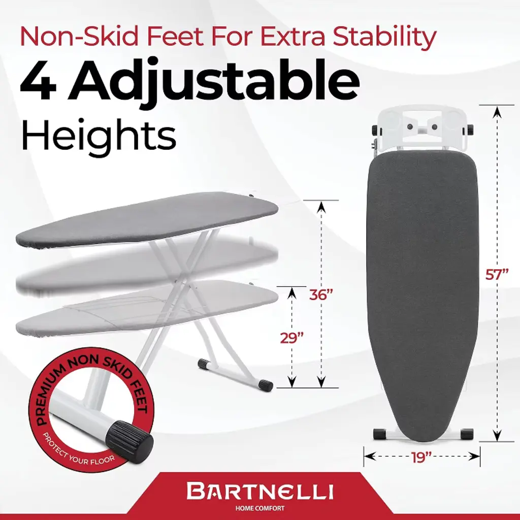 Bartnelli Extra Wide Pro Ironing Board 19x48" Ironing Surface Premium 4 Layer Heat Resistant Cover