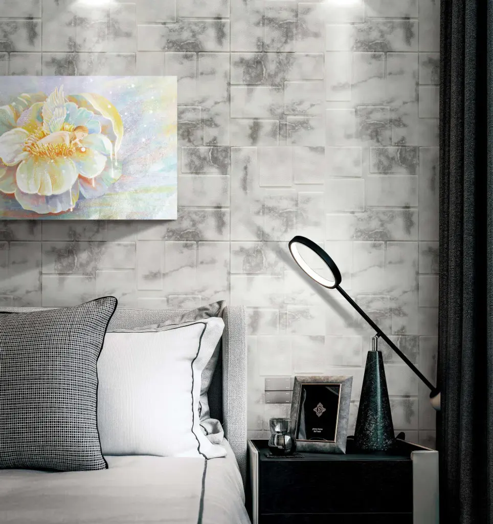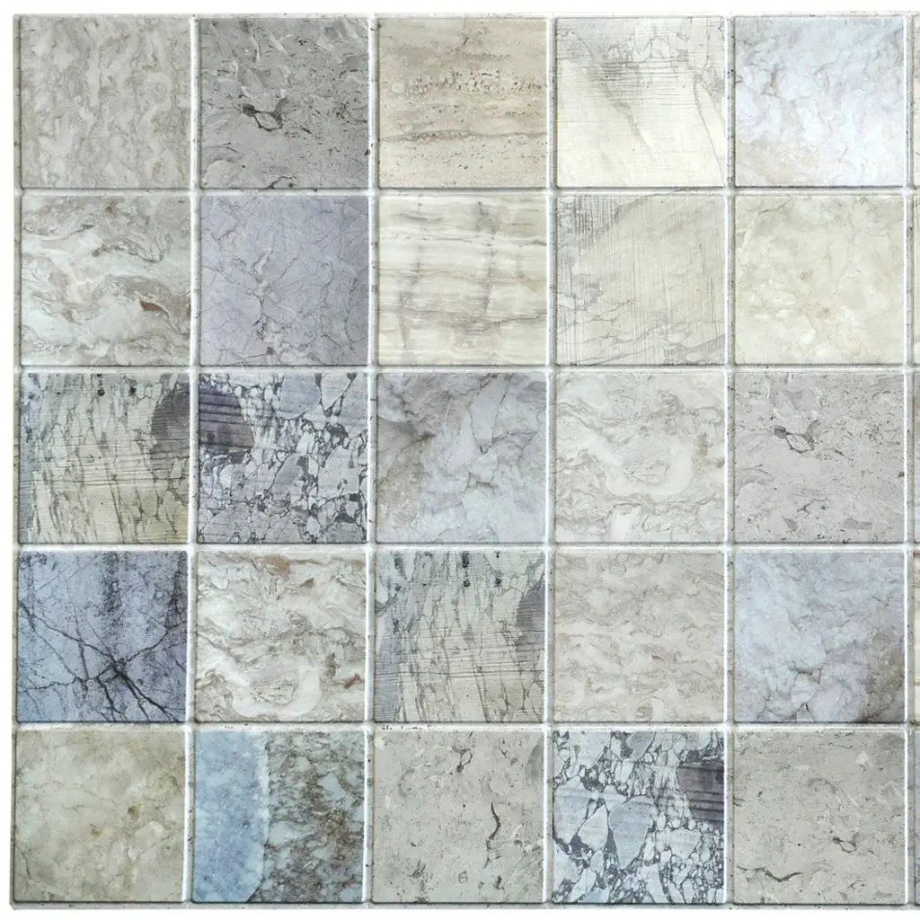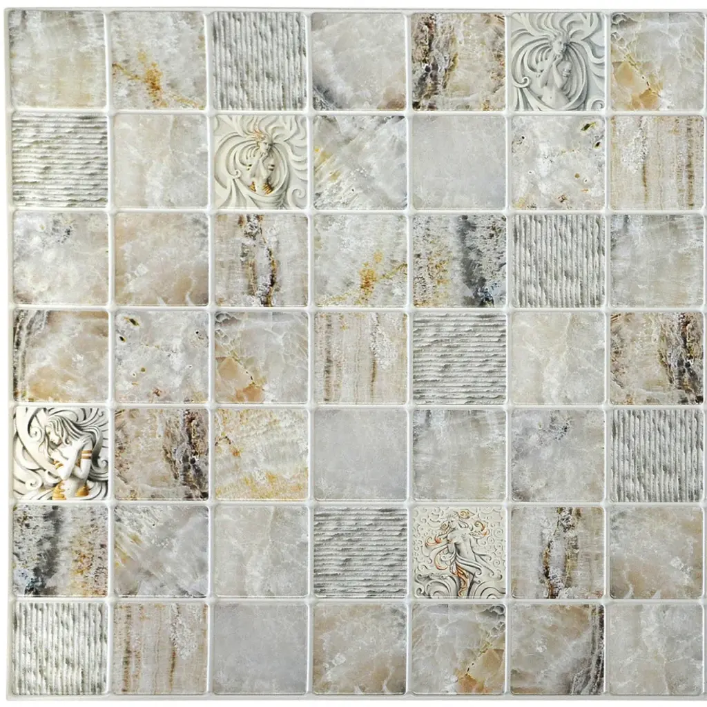 Beige Charcoal Patchwork 3D Wall Panels, Set Of 10, Covers 52.7 Sq Ft