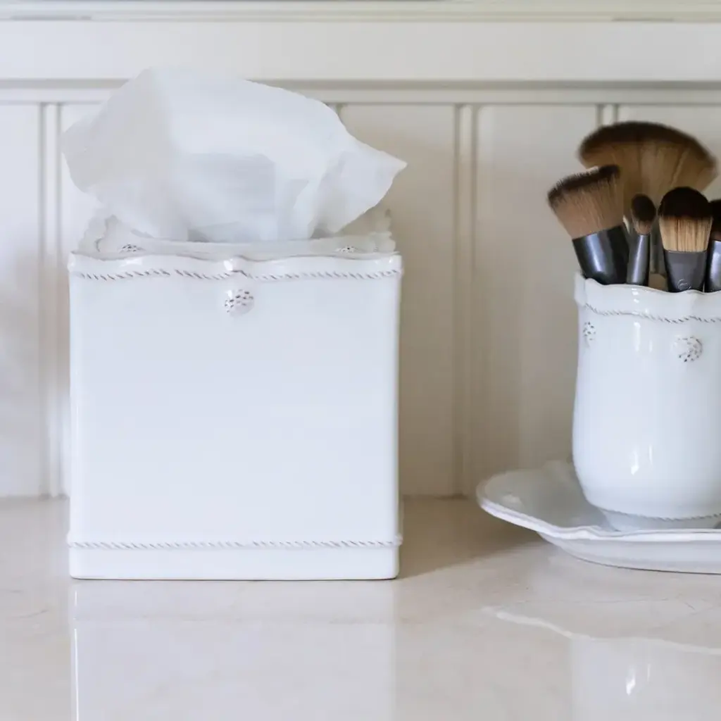 Bright, fresh and classic, our elegant tissue box cover, bedecked in our iconic Berry & Thread motif looks chic in your bedroom, bathroom or deskside. Based in Connecticut, Juliska is committed to bringing elegant European design into our modern homes. Since its founding in 2001, when David and Capucine Gooding began by working with artisans outside of Prague to reproduce antique Bohemian glass pieces, every piece from Juliska has shared a rich heritage spanning six centuries of European design. Juliska's creations are timeless, romantic and effortlessly chic.