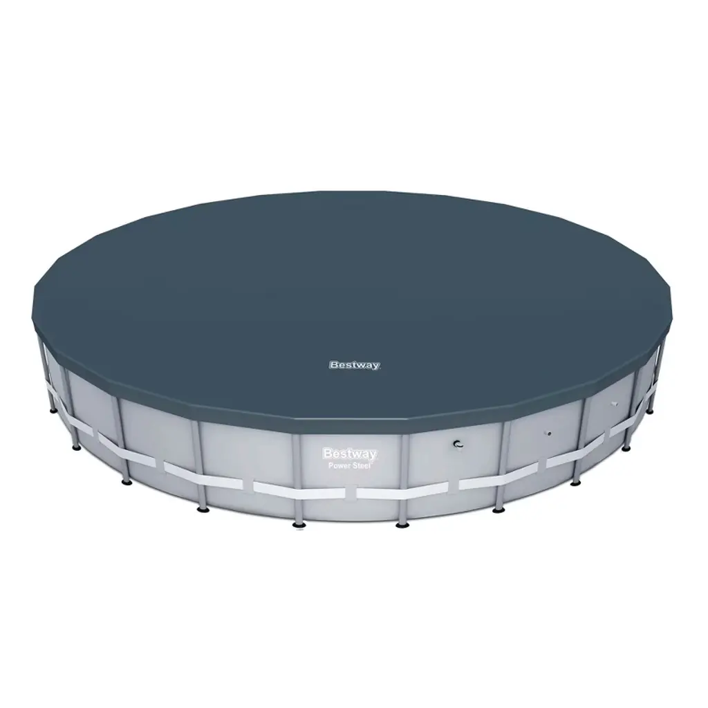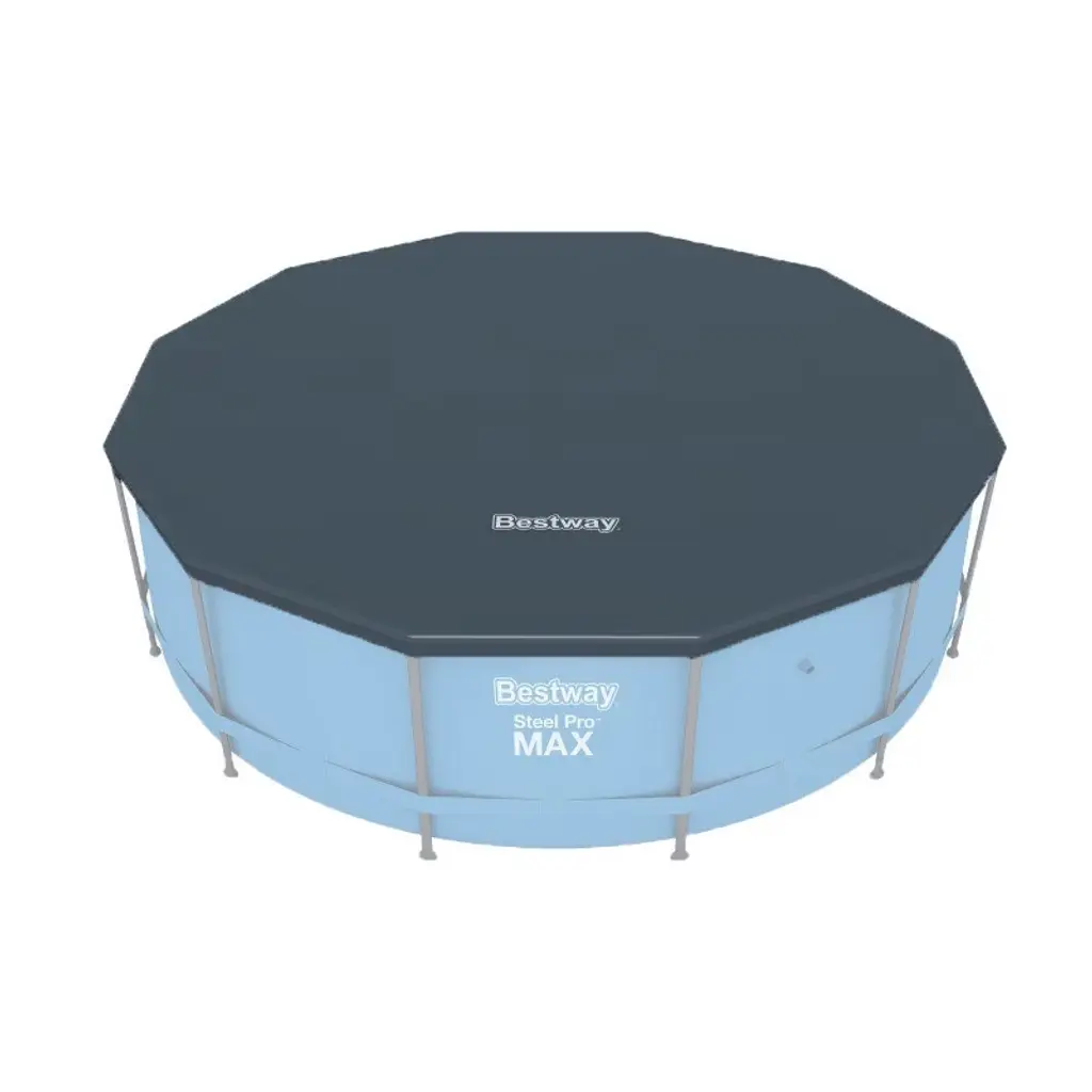 Pool Cover for Above Ground Pro Frame Pools (2 Pack) Ensure that your above-ground pool stays clean and free of debris all year long with the help of the Bestway Round 12-Foot Pool Cover. This pool cover is made out of durable PVC material and is specially crafted to help keep leaves, sticks, and other types of debris out of your pool. It is designed to work with above-ground pools like the 12-Foot Steel Pro and Power Steel Pools. It also features handy drain holes that helps prevent excess water accumulation and even comes with ropes to ensure you get a snug fit on the pool. Keep your pool water clean and ready to enjoy with this pool cover from Bestway.