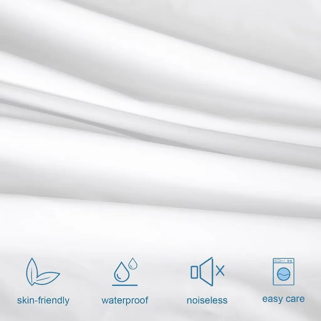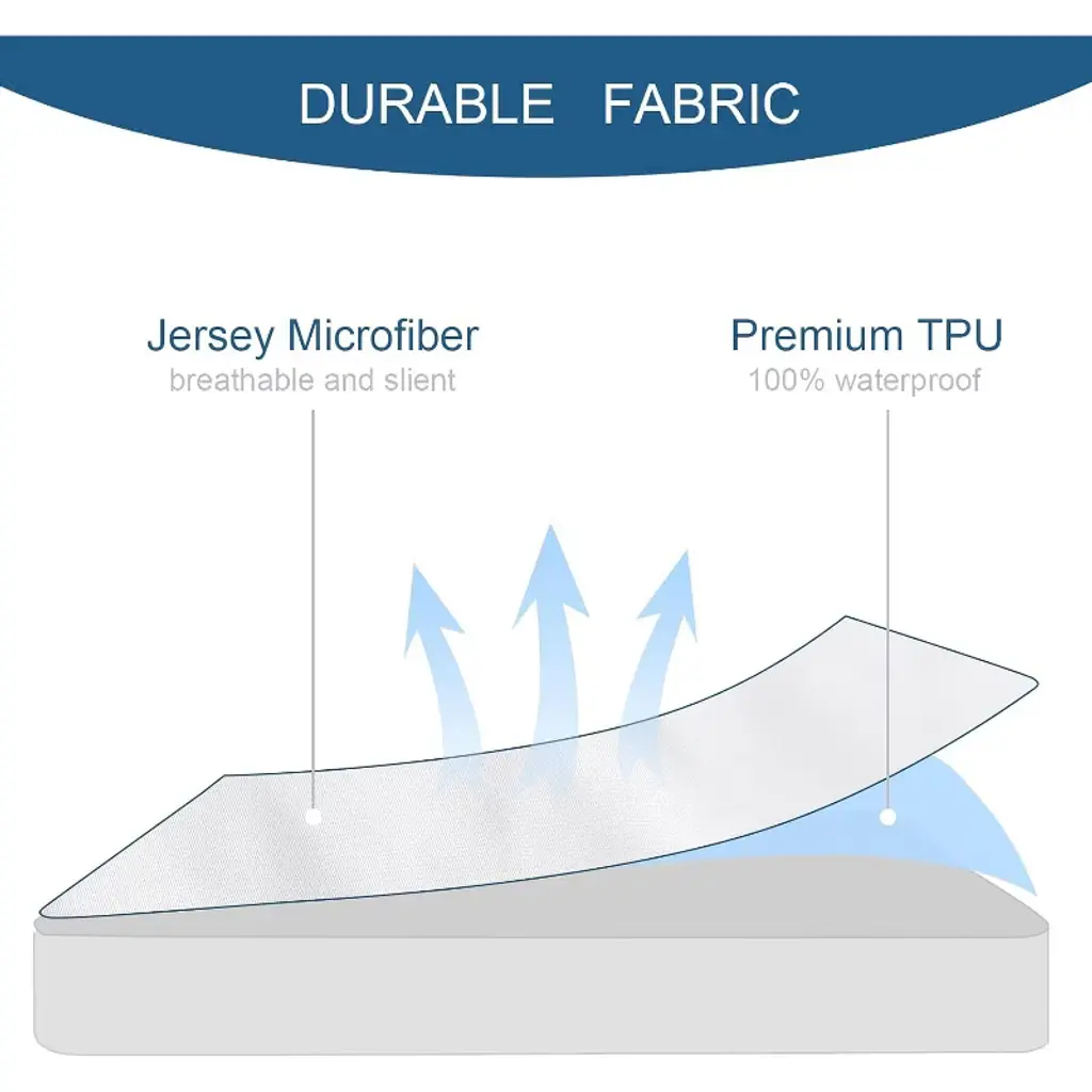 Breathable & Noiseless FabricUltra Soft & Breathable Fabric: Twin mattress protector top side is made from breathable fabric, which is a skin friendly and ultra soft. With the waterproof membrane laminated back, it can protect your mattress from spills, liquids and stains, especially suitable for those with kids, pets, or elderly.100% Waterproof & Noiseless: This twin mattress protector is lined with premium waterproof material (TPU) to prevent leakage. And we perfectly control the thick of membrane, it remains quiet however you turn.Strong Elastic & 360° Snug Fit: Our twin mattress protector waterproof perfectly fits mattress of most sizes. It's easy to install. Our waterproof mattress protector are available in a range of sizes: Twin (39" x 75"), Easy Care & Machine Washable: Machine washable and tumble dry a low setting. We would recommend purchasing 2 twin mattress protectors, so you will have a replacement when accidents occur