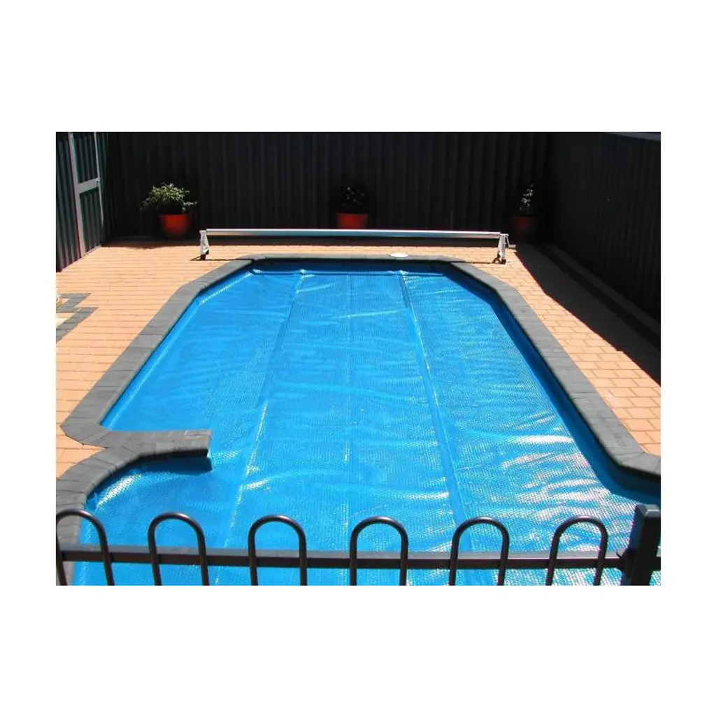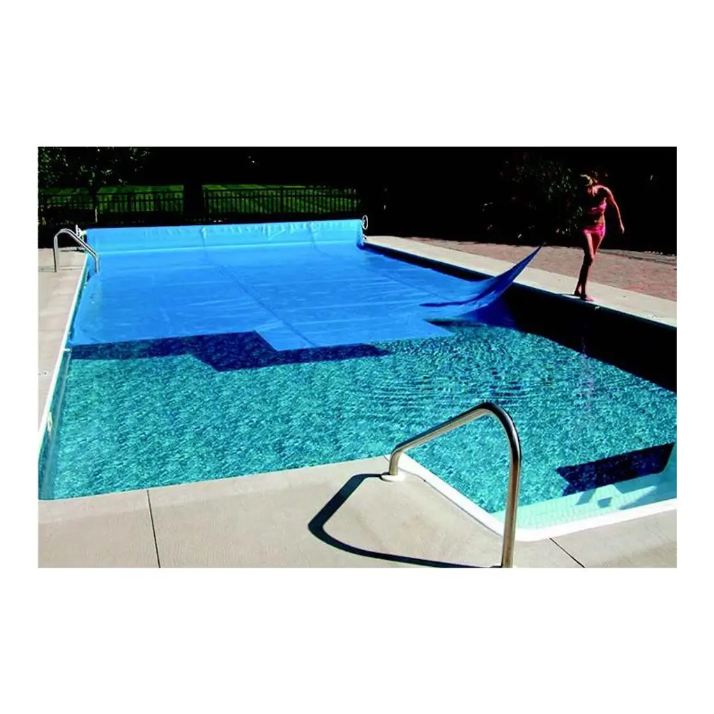 A solar blanket is a great investment for every pool owner. In fact, in some areas of the country, a good quality solar blanket may be all you need to warm your pool water and make your pool more enjoyable. Product Features: Solar blankets will increase pool water temperature by 10 to 15 degrees (or more in season) Significantly reduces heating costs by up to 80% Superior heat absorption and retention Reduces evaporation, saving water and costly chemicals Extends swimming season by up to 6 weeks Solar blankets are made from a durable polymer material with thousands of tiny sealed air bubbles. They float "bubble side down" on the surface of your pool water when the pool is not in use, and allow solar energy to pass through, which is then trapped as retained heat in the pool Includes a 4-year manufacturers warranty 8 mil thickness Made in the USA Solar reel not included Dimensions: 24' wide x 44' long Material(s): UV stabilized polyethylene Note: Photo displays rectangular solar cover that has been custom cut by a customer to fit their pool