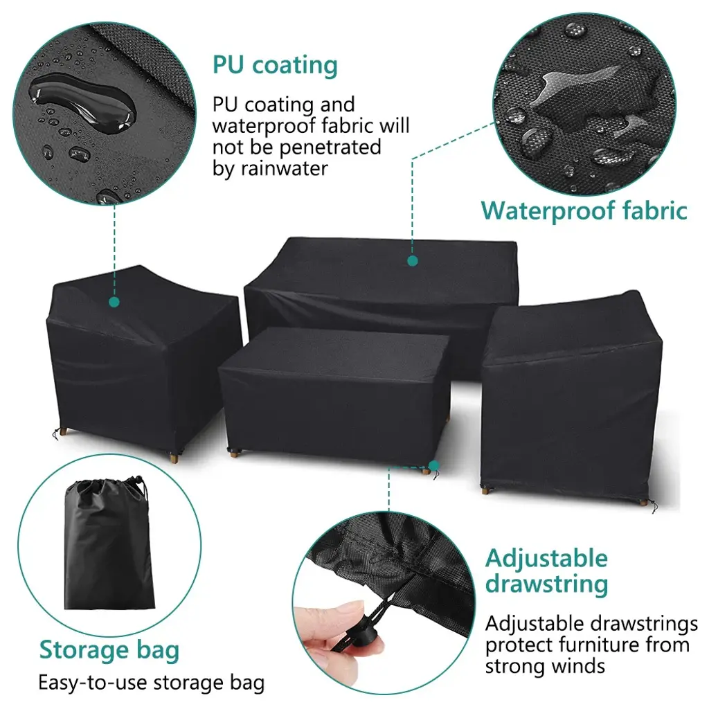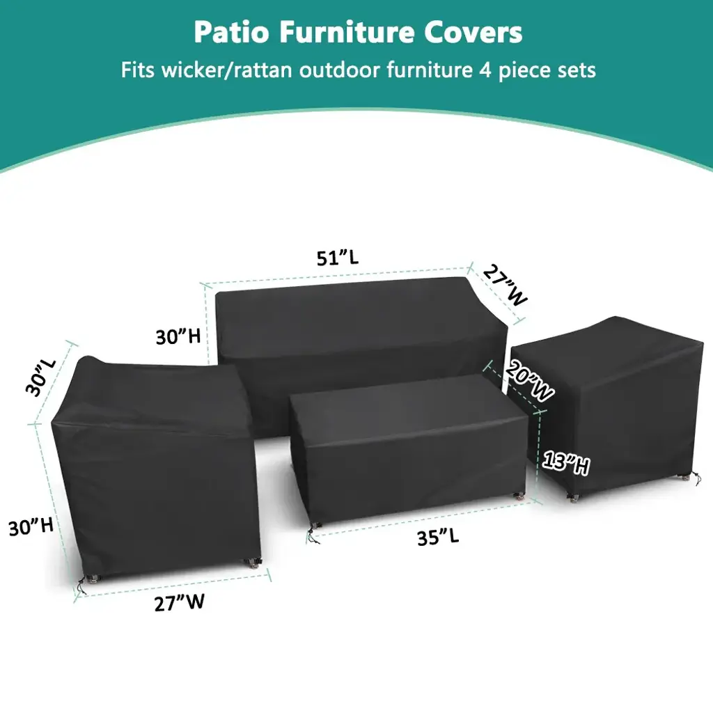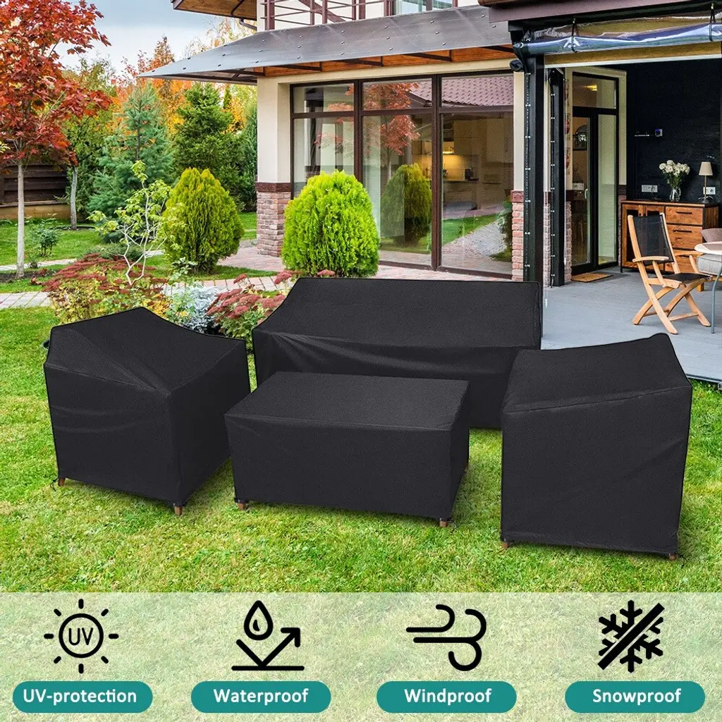 Black 420d Four Piece Furniture Cover Sofa And Table 4-Pieces Set Cover - 51x27x30" - Black