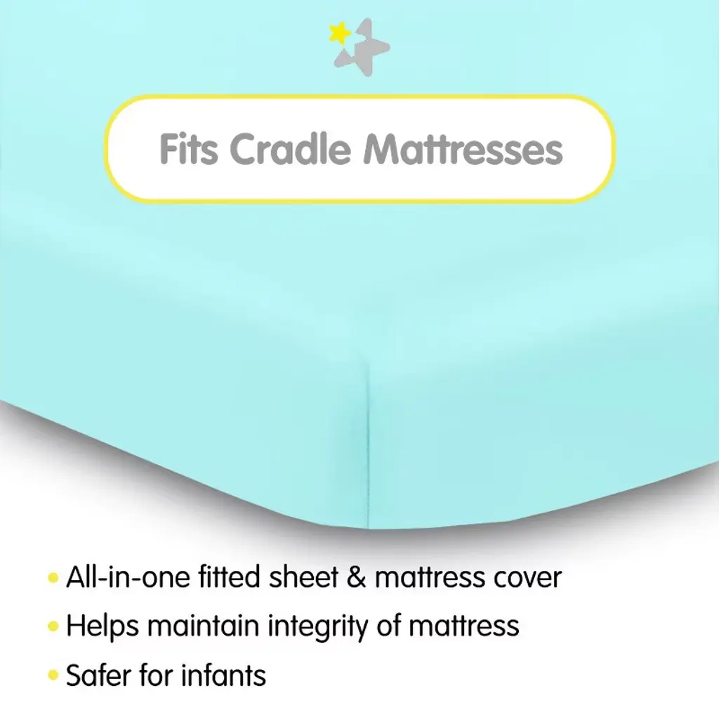 Breathablebaby All-in-one Fitted Sheet & Waterproof Cover, For 36" X 18" Cradle Mattress (2-pack), Aqua