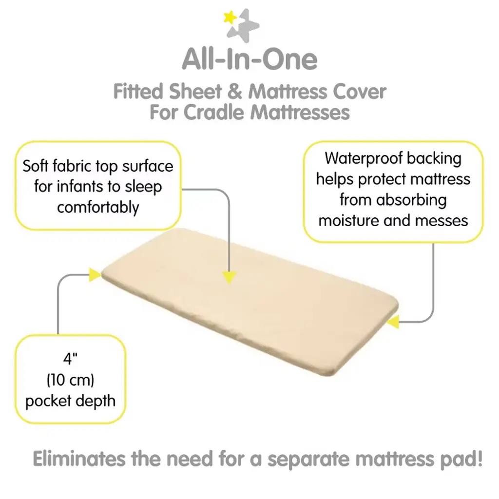 Breathablebaby All-in-one Fitted Sheet & Waterproof Cover, For 36" X 18" Cradle Mattress (2-pack), Beige