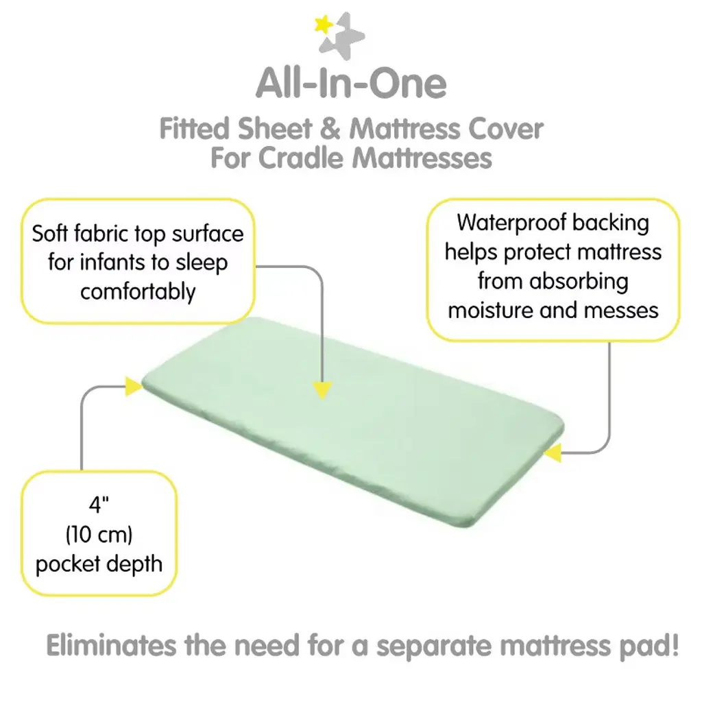 Breathablebaby All-in-one Fitted Sheet & Waterproof Cover, For 36" X 18" Cradle Mattress (2-pack), Mint Green