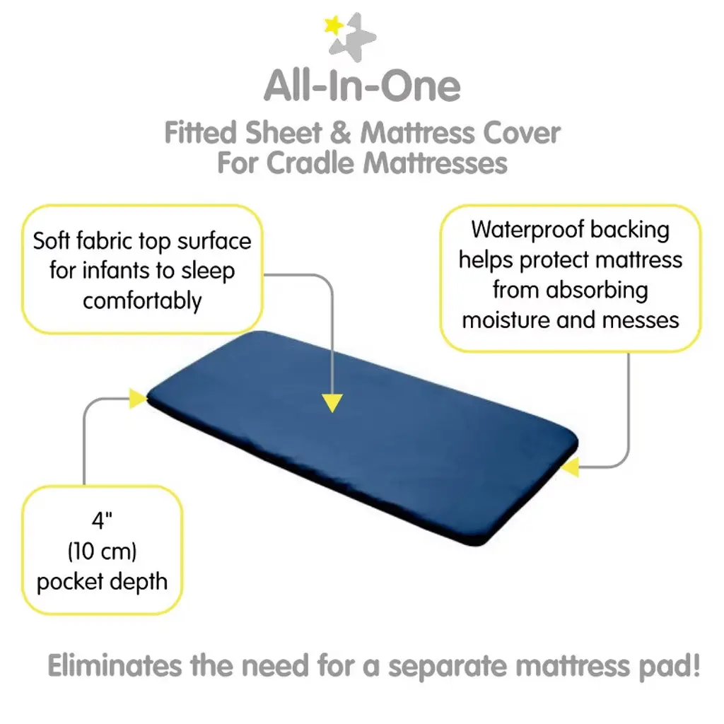 Breathablebaby All-in-one Fitted Sheet & Waterproof Cover, For 36" X 18" Cradle Mattress (2-pack), Navy