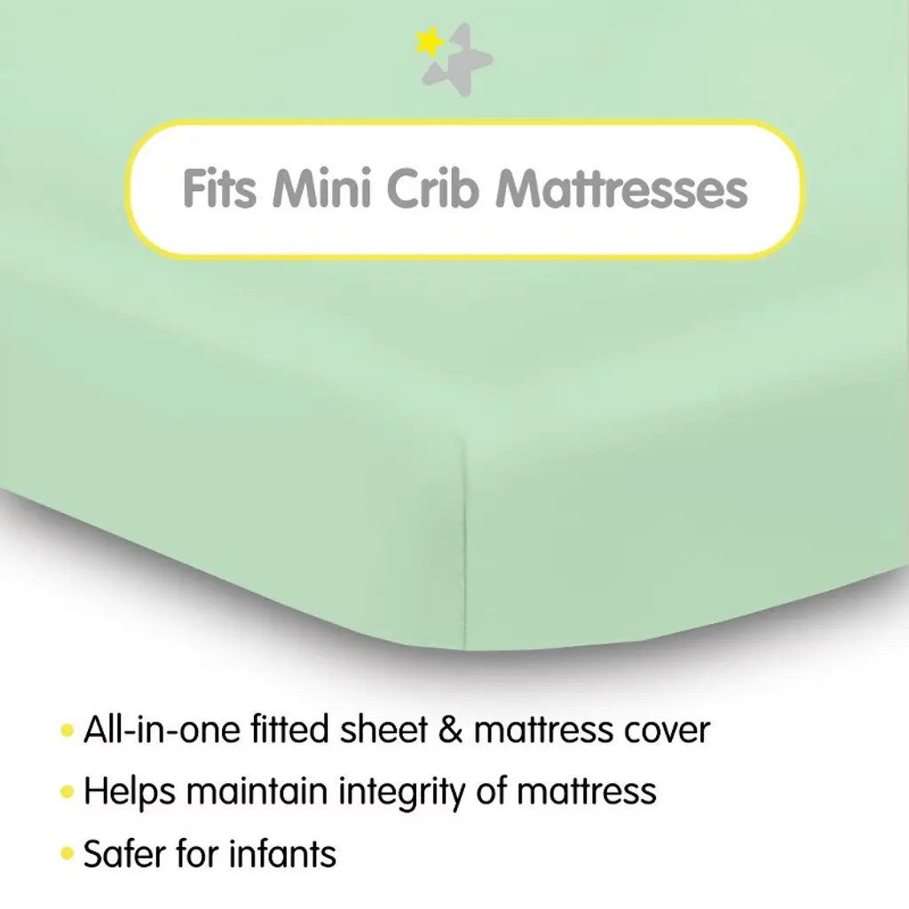 Breathablebaby All-in-one Fitted Sheet & Waterproof Cover, For 38" X 24" Mini Crib Mattress (2-pack), Mint Green