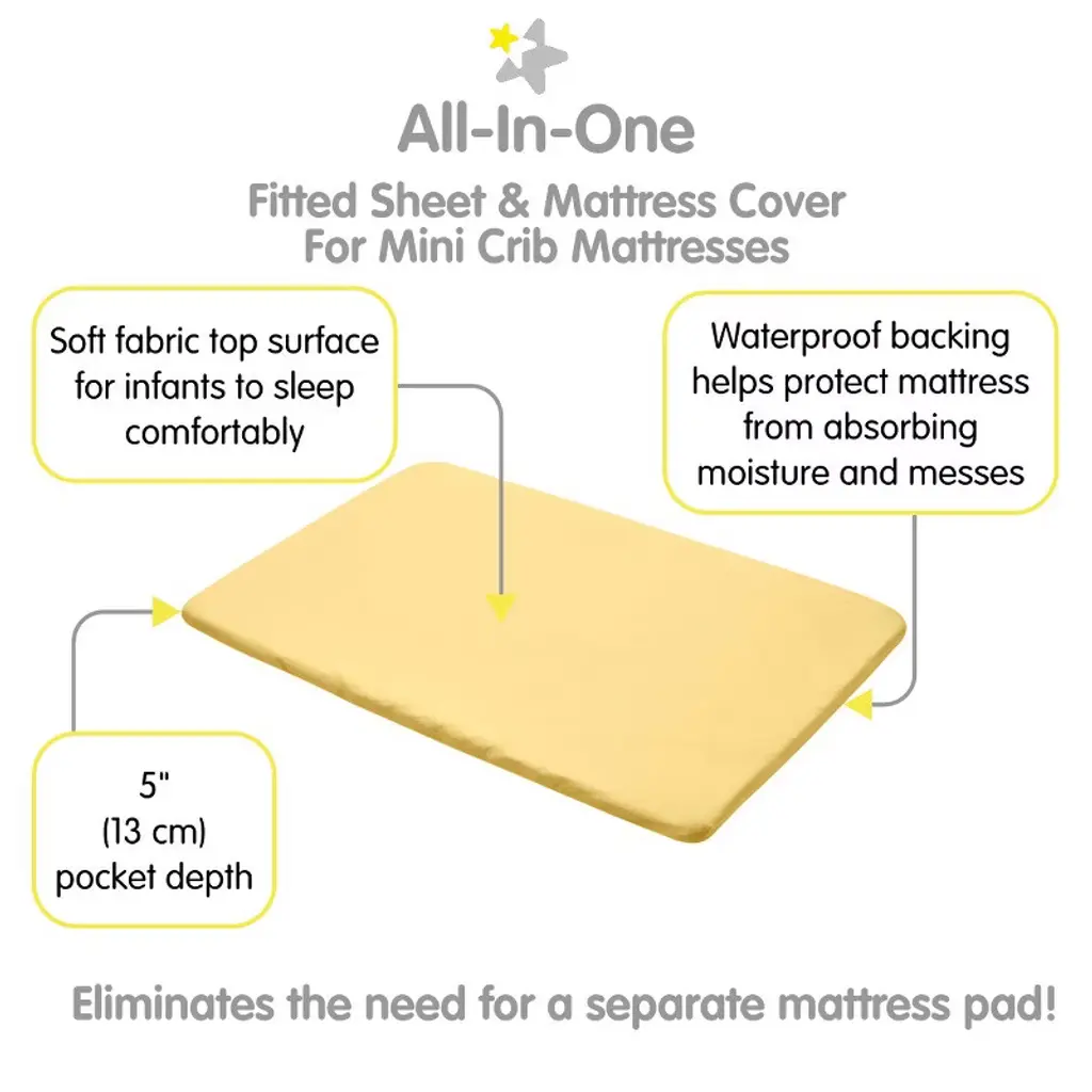 Breathablebaby All-in-one Fitted Sheet & Waterproof Cover, For 38" X 24" Mini Crib Mattress (2-pack), Yellow