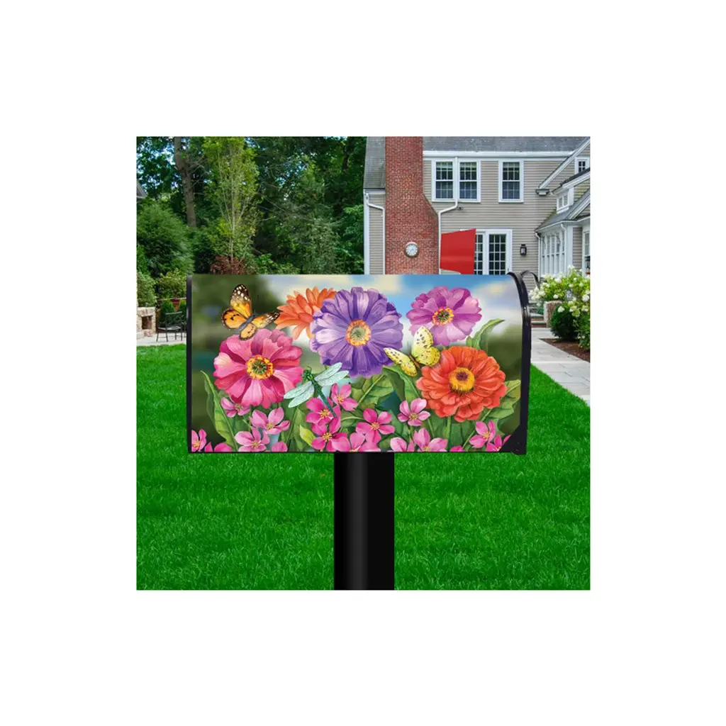 Briarwood Lane Mailbox Cover - Oversized - Zinnias In Bloom Spring Oversized For Spring Mailbox Cover