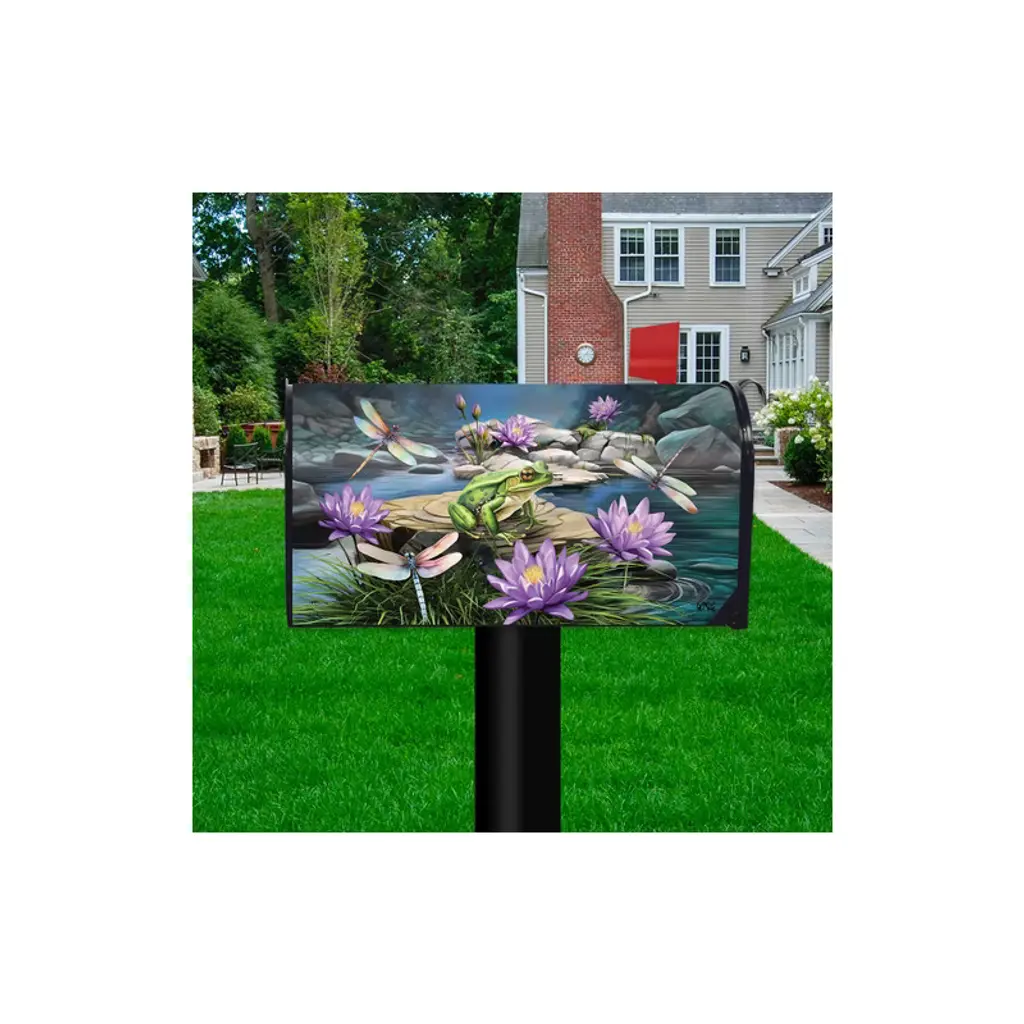 Briarwood Lane Spring Mailbox Cover - Standard Size - Dragonflies And Frog For Spring Mailbox Cover