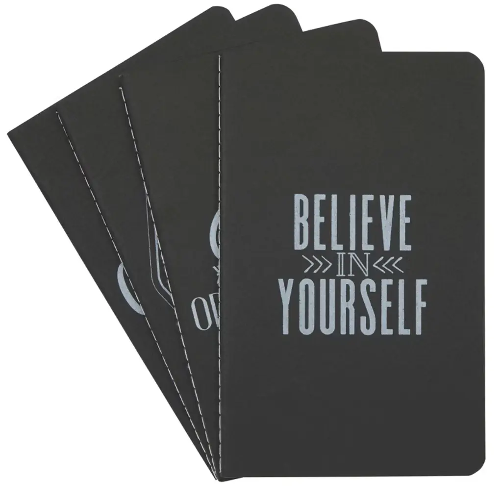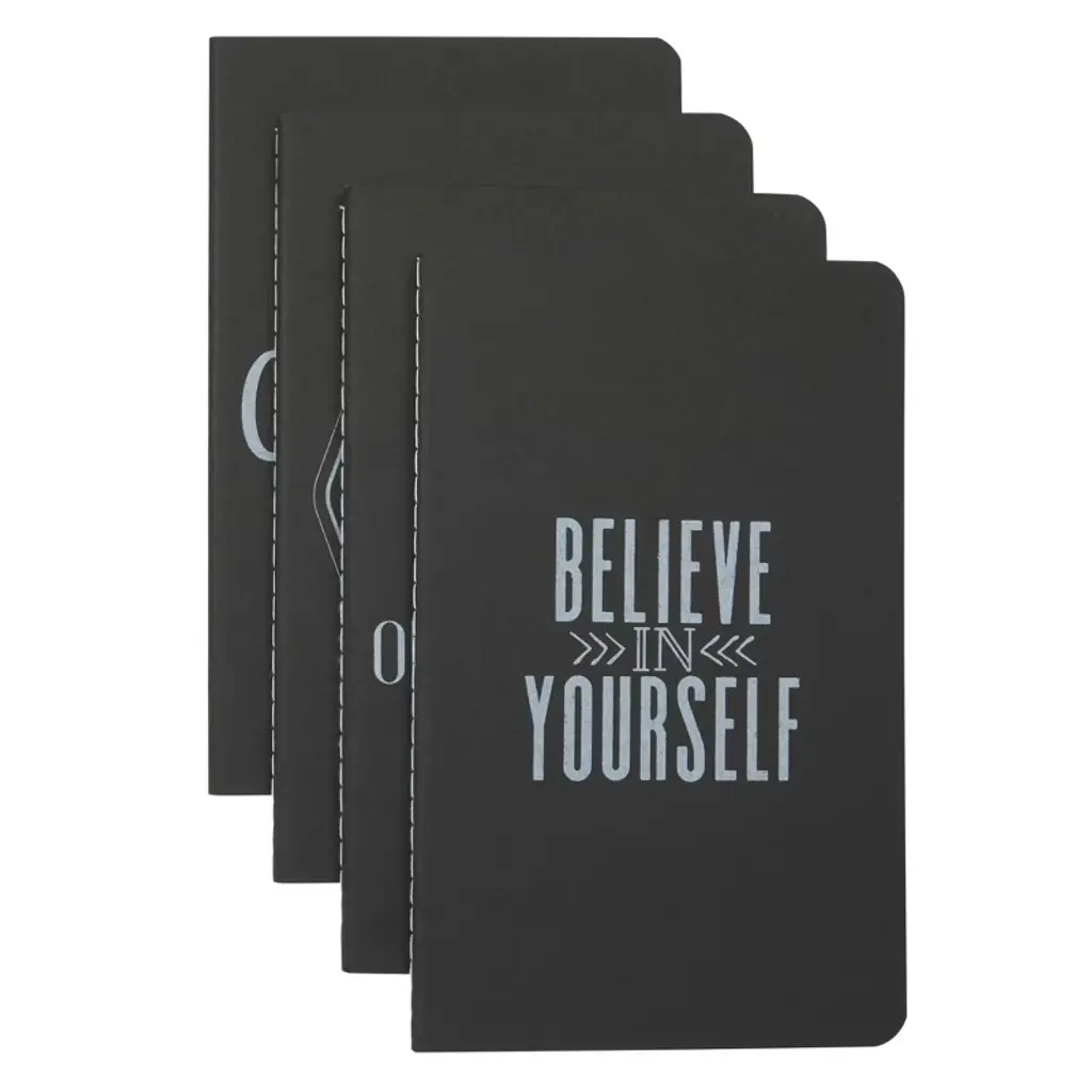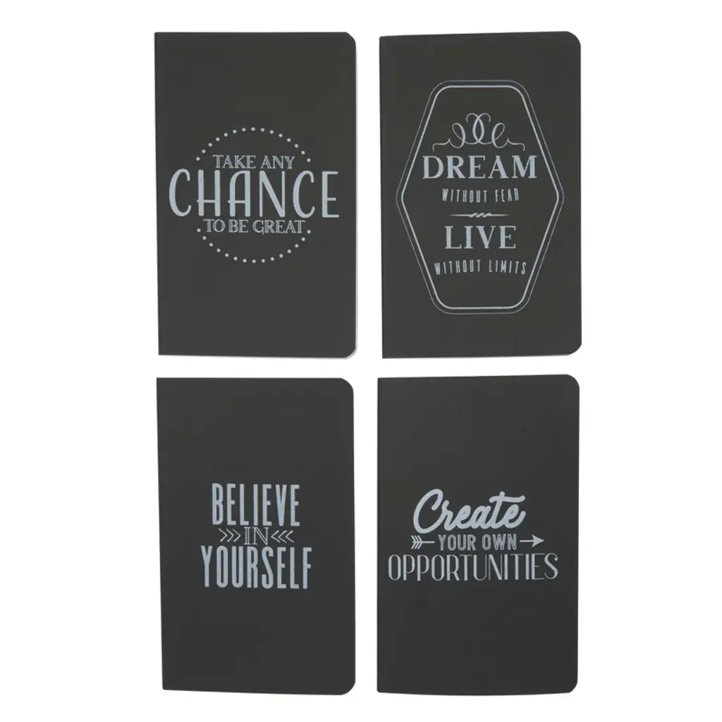 Bright Creations 4 Pack Motivational Kraft Cover Journals, Grid Notebook, Black (5 X 8 In)