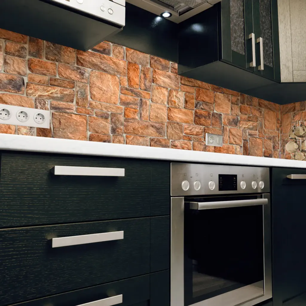 Brown Red Stone 3D Wall Panels, Set Of 10, Covers 56.1 Sq Ft