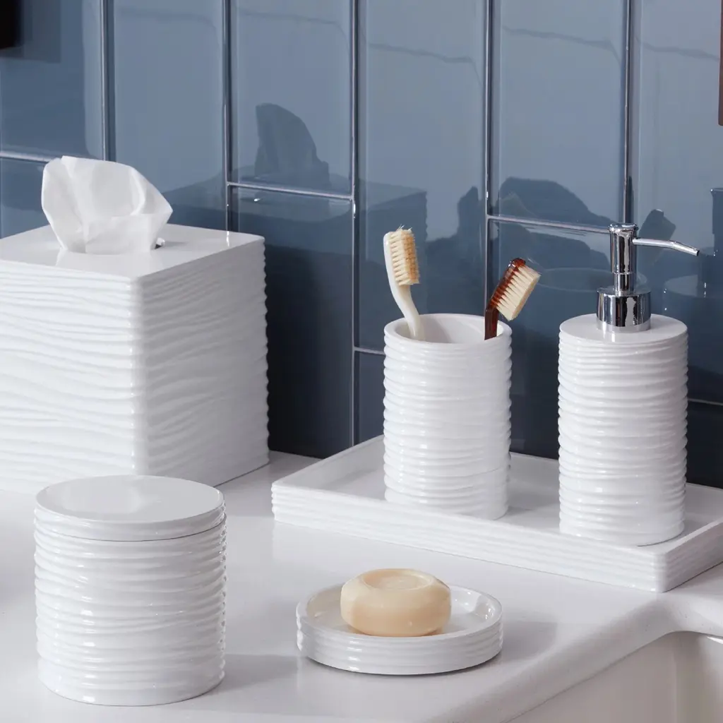 Created exclusively for this set of bath accessories: the By the Sea bath collection by Roselli is inspired by the idea of a warm summer breeze making a rippling, flowing pattern on calm waters.