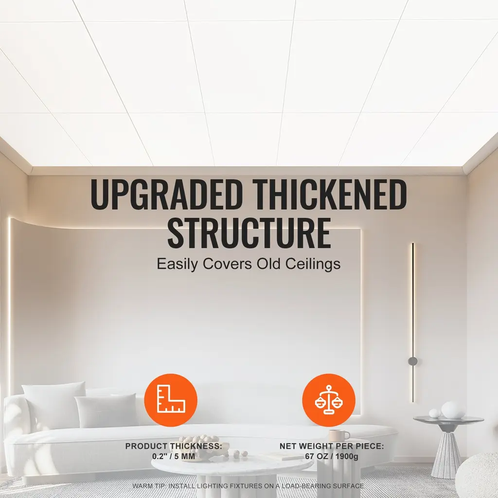 Ceiling Tiles Premium Pvc Sheet Ceiling Covering For Home/office Decoration - 0.2 Inches Thick - 10-Pack 24 X 24 In
