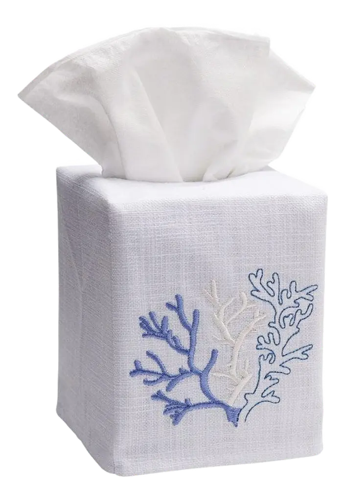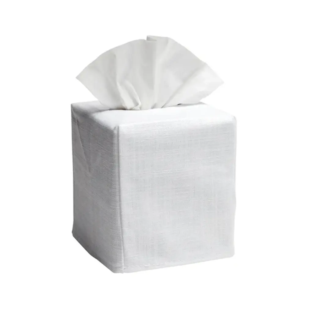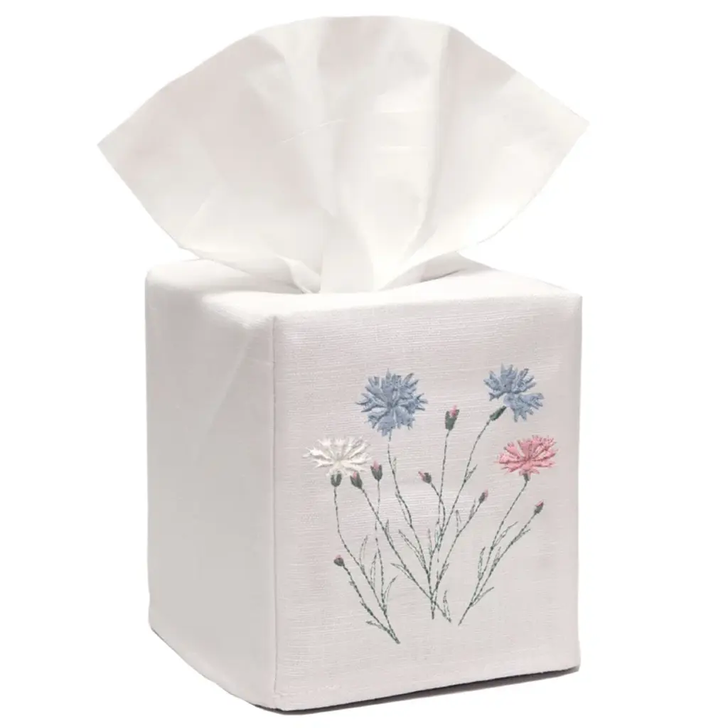 Add an elegant touch to any room in your home with our festive embroidered Christmas Partridge in a Pear Tree Tissue Box Cover. Size: W-4 ½”, D-4 ½”, H-5 ¼” (Fits the standard Puffs & Kleenex cubes) Fabric: White Linen / Cotton Embroidery: Christmas Partridge in a Pear Tree Washing: Machine washable cold