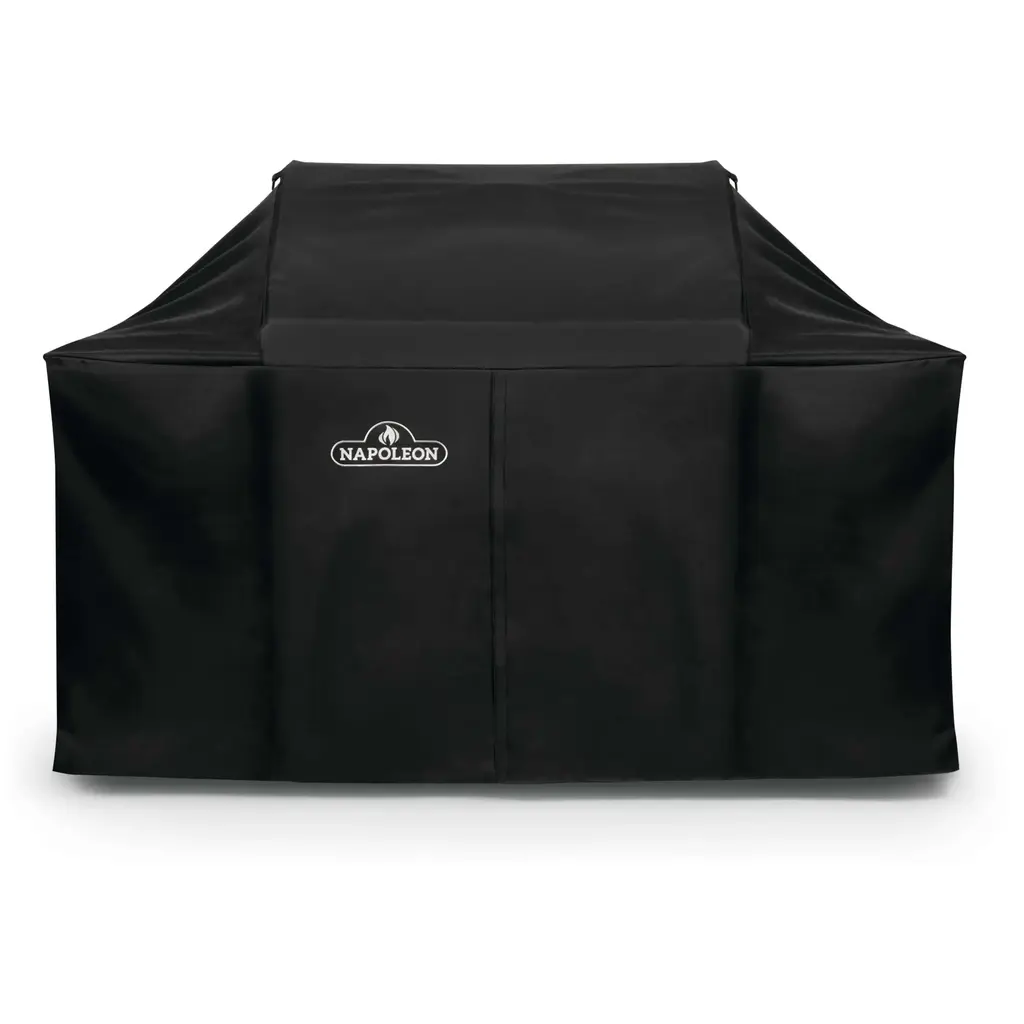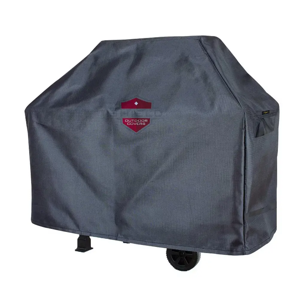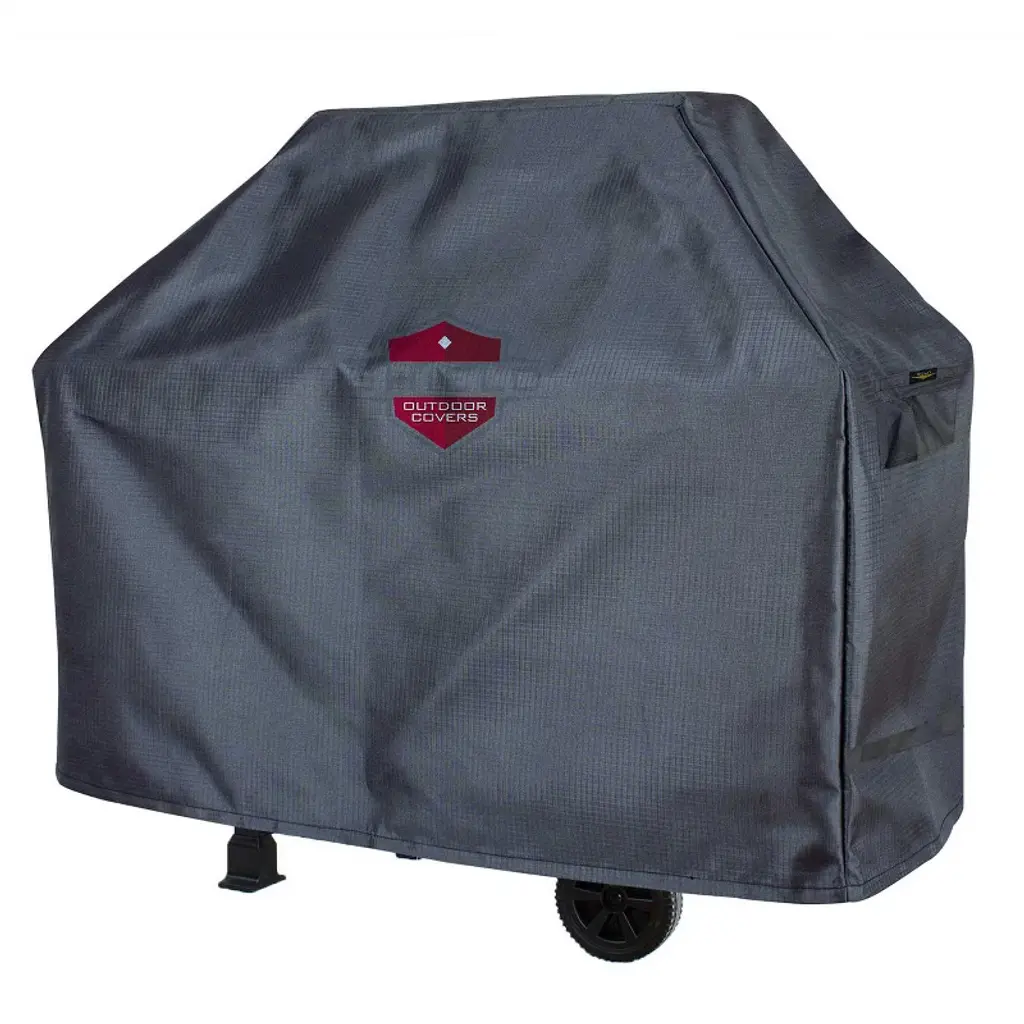 X-Small Fits Grills Up To 38 inches long by 22 inches deep by 44 inches high, Small Fits Grills Up To 44 inches long by 22 inches deep by 44 inches high, Medium Small Fits Grills Up To 52 inches long by 24 inches deep by 44 inches high, Medium Fits Grills Up To 58 inches long by 26 inches deep by 48 inches high, Large Fits Grills Up To 64 inches long by 28 inches deep by 48 inches high, X-Large Fits Grills Up To 70 inches long by 30 inches deep by 48 inches high, XX-Large Fits Grills Up To 74 inches long by 30 inches deep by 51 inches high, XXX-Large Fits Grills Up To 80 inches long by 30 inches deep by 51 inches high. StayOn elastic loops fit over legs to keep cover on during high winds and breezy conditions. Material: PolyesterAssembly: AssembledColor: Black