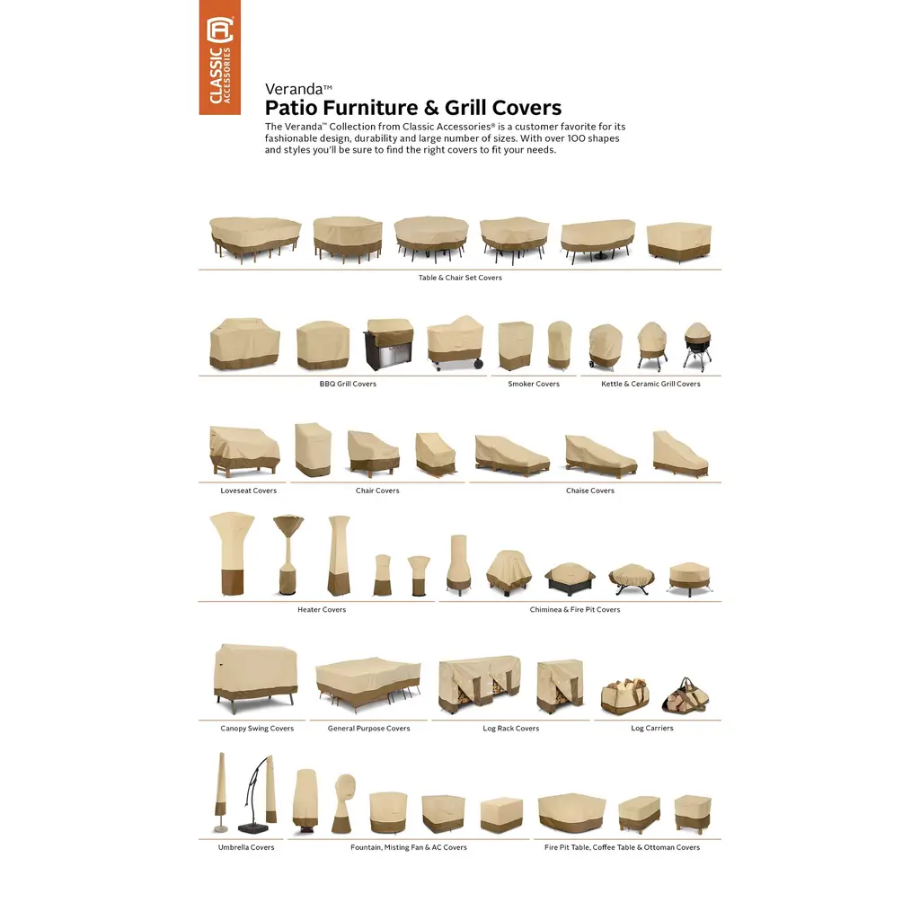 A customer favorite for its fashionable design, durability and extensive collection of matching products, the Veranda™ line features our heavyweight Gardelle™ woven polyester fabric and special water-repellent and resistant undercoating. When you buy a Classic Accessories grill or patio furniture cover you are not just getting a cover; you're also purchasing peace of mind. Not only will your grill and patio furniture be protected from the elements, but you'll be protected with the easiest warranty in the industry. If your product fails within the warranty period, look for us online and take advantage of our Hassle-Free warranty program supported by our US-based customer service team.