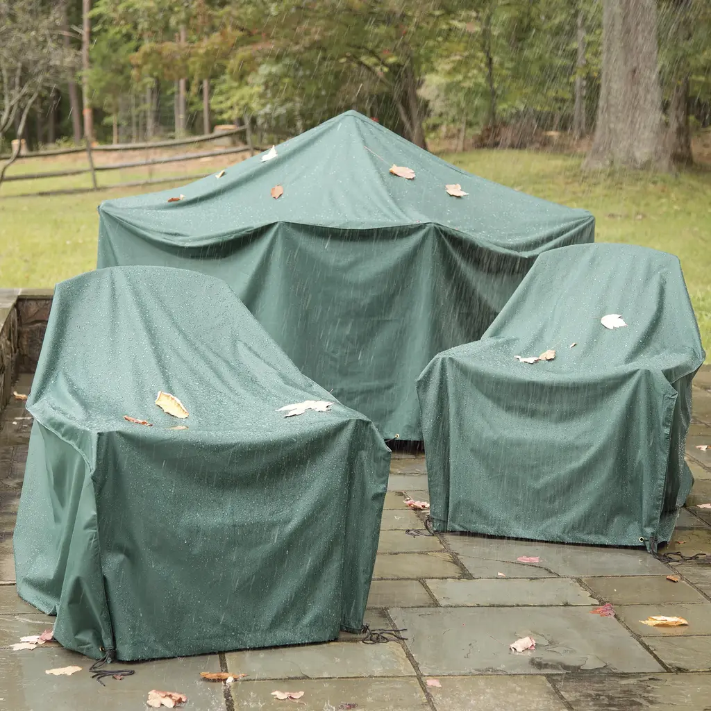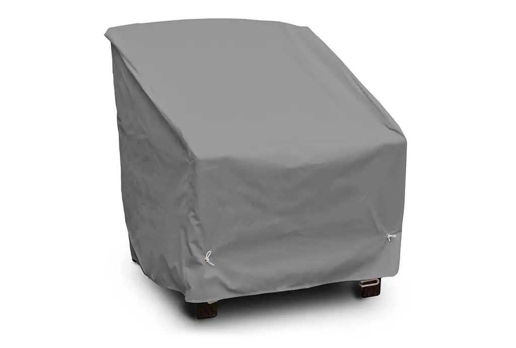 Our all-weather, water-repellent Outdoor Furniture Covers are ideal for guarding your furniture against fluctuating temperatures, wind and snow, drenching spring showers, and summer sun. Unlike vinyl covers, our Cover For Adirondack Chairs is made of pliant, cloth-like polyester that resists cracking so your cover lasts longer. The UV-treated material resists fading, stains, and mildew. Sewn edges add extra durability to ensure this cover will hold up through the season and beyond. Generously sized cover fits most Adirondack chairs.Cover life expectancy varies according to climate, weather exposure, care and usage. Imported.
