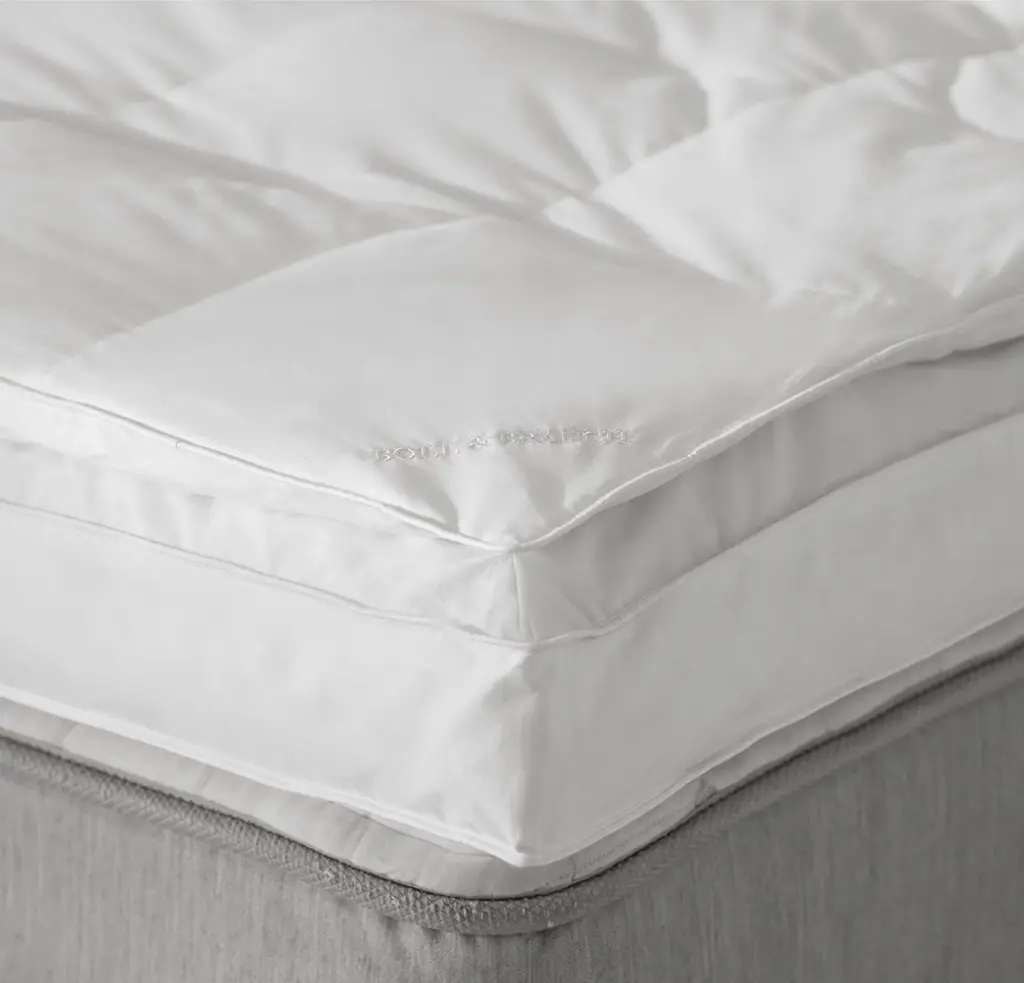 For that extra layer of sink-in softness, our Featherbed is our most plush mattress topper, offering over 4” of cloud-like cover. It’s made with cruelty-free, RDS-certified fills in a dual-chamber design: the top layer is filled with 550 fill power white down for ultimate comfort, while the separate bottom chamber is filled with feathers for generous support. The unique baffle box construction keeps the fill perfectly in place to maintain fluff and shape over time, all wrapped with a soft, breathable fabric shell. The Feel Supremely Plush – Dual-chambered in feather and down for superior loft and sink-in softness