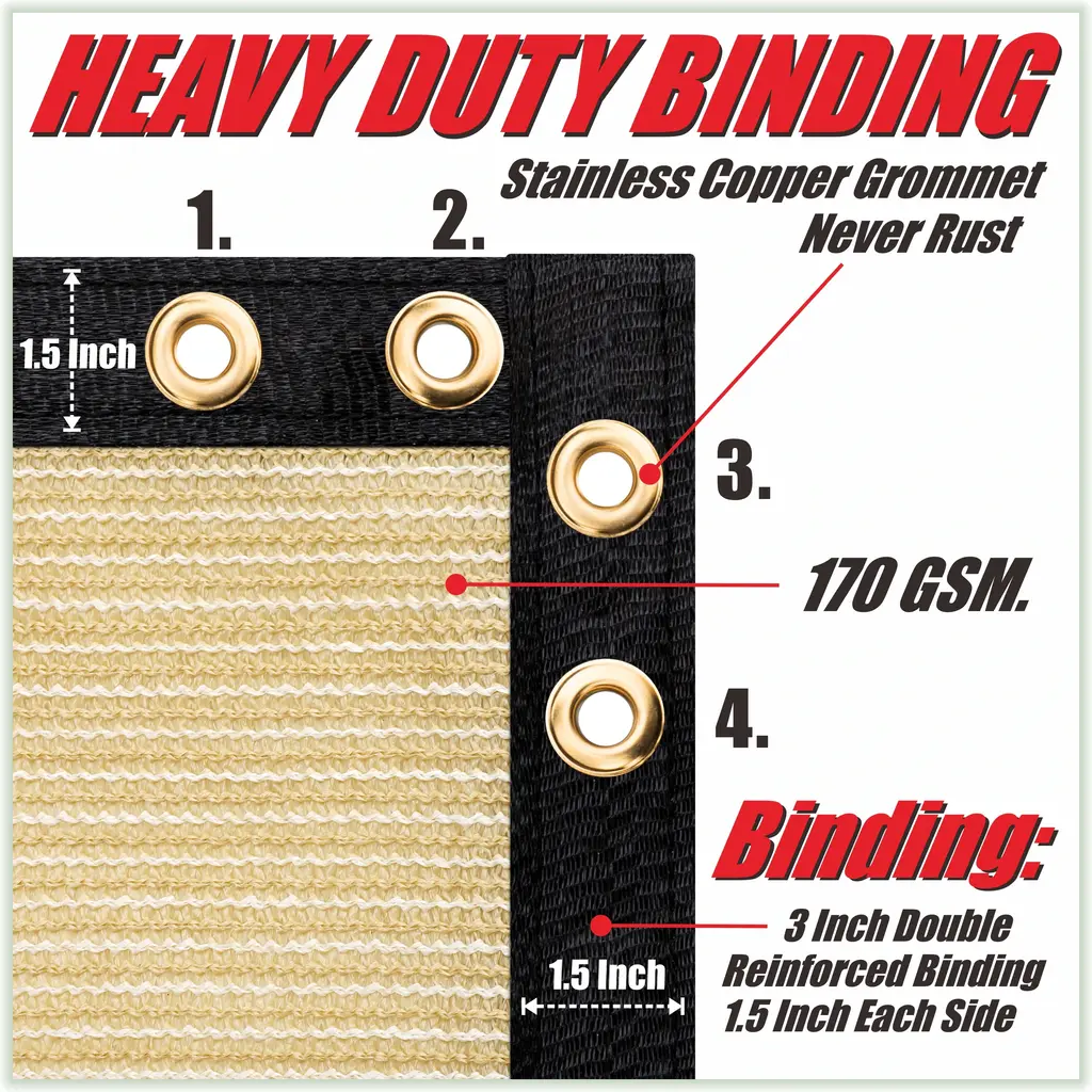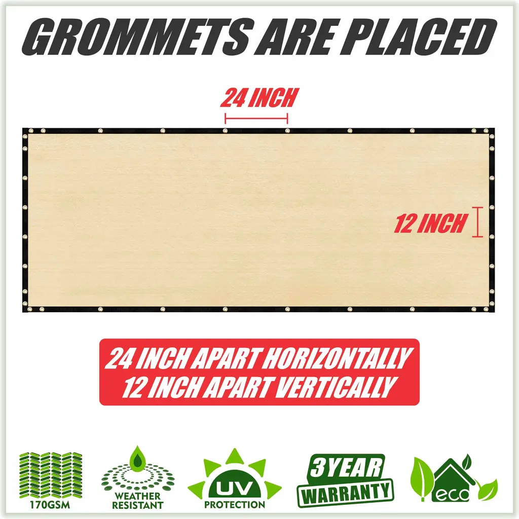 Tired of your neighbor's dog barking at your kids or feeling like your neighbors are spying on you? Protect your privacy with the COLOURTREE Privacy Fence Screen, constructed with durable, high quality materials such as 170 GSM 100% non-recycled high-density polyethylene (HDPE), reinforced stitched edges with black bindings and durable anti-rust grommets. Our fence screens are proven to hold up strong through wind, sun and rain while providing 90% visibility and 93% UV blockage. Installation is simple with zip ties and a generous amount of grommets to keep a tight fit. Our wide variety of colors and sizes are ideal for both residential and industrial fences, providing style and privacy to your backyard, patio, tennis court, pool, construction project, park, etc. Features: Specifications: