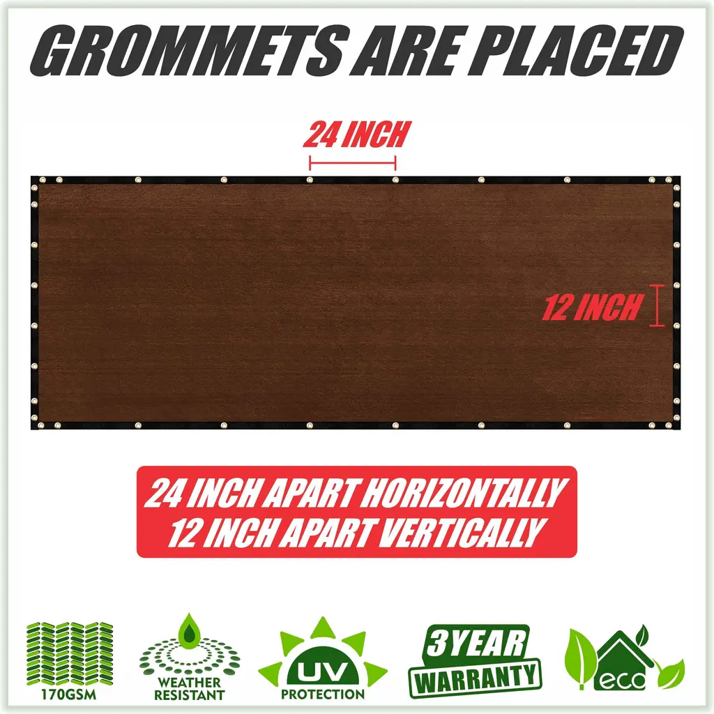 Colourtreeusa 6 Ft. Height Fence Privacy Screen Windscreen Cover Fabric Shade Tarp Netting Mesh Cloth Commercial Grade 170 Gsm - 6' X 10' - Brown