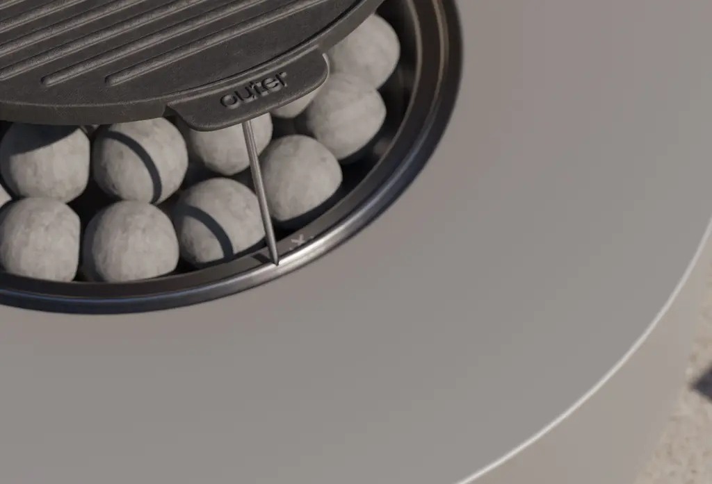 Discover the versatility of our Concrete Fire Pit Table, available in two shapes: rectangular and round, designed to enhance your outdoor space with both style and functionality. This multifunctional piece seamlessly transitions between a sleek coffee table, a unique grilling surface, and a cozy fire pit. Featuring ceramic spheres that not only add visual appeal but also act as a wind guard for maximum heat efficiency, keeping you and your guests warm and cozy. Explore your options below and refer to the "What's Included" section to see the features of each set.