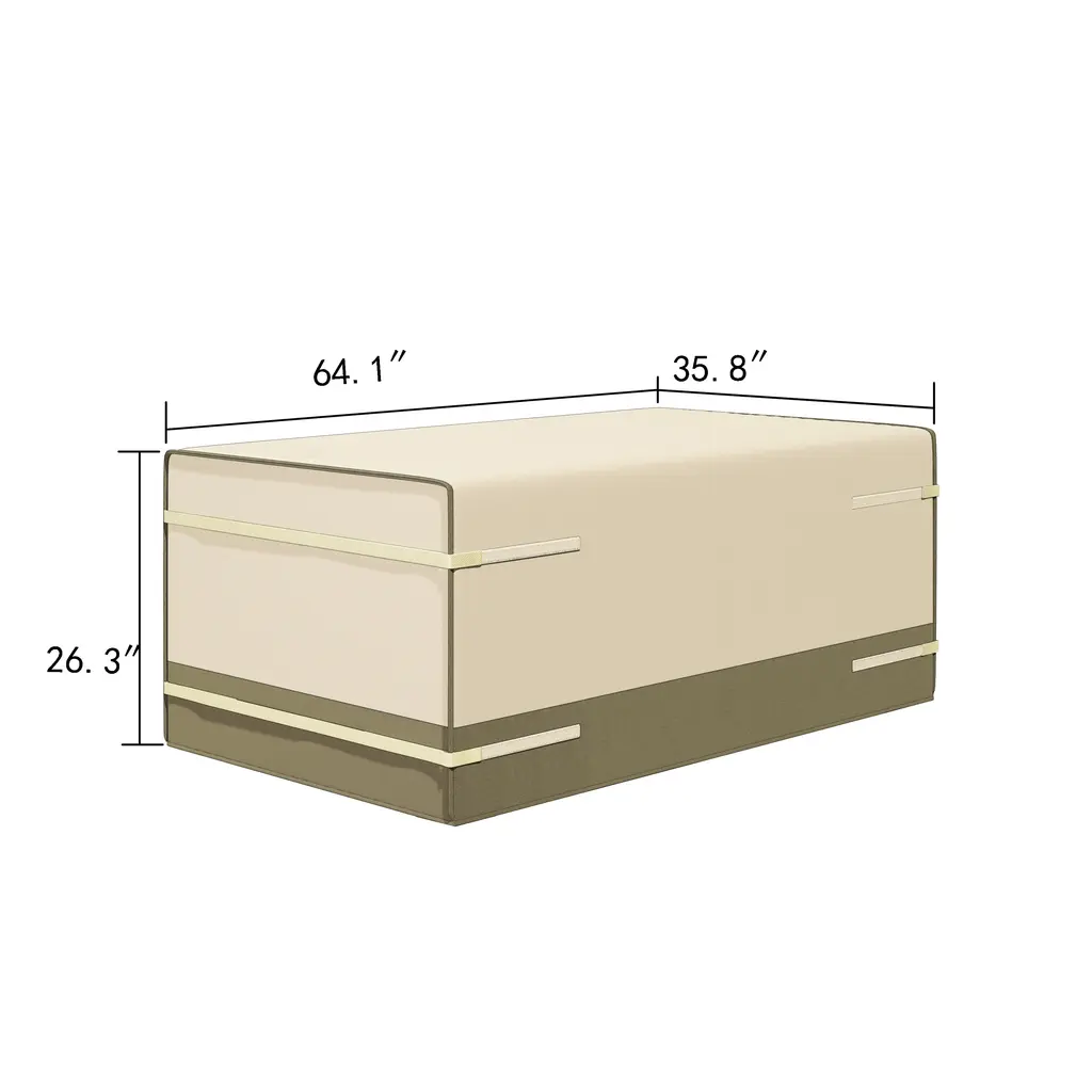 Protecting your furniture with the rectangle outdoor furniture cover by Corvus! Our cover have interior bound seams for strength, high-density stitching for durability, padded handles for comfort, matching webbing for a great look and California Prop 65 compliance for health and safety. Traditional yet stylish multi-color fabric to blend with most outdoor patio furniture. Heavy duty waterproof protective Fabric - Won't crack in cold weather. Multi-layer material resists mold and mildew buildup. Cover's Dimension:Guaranteed to fit furniture size:Feature: