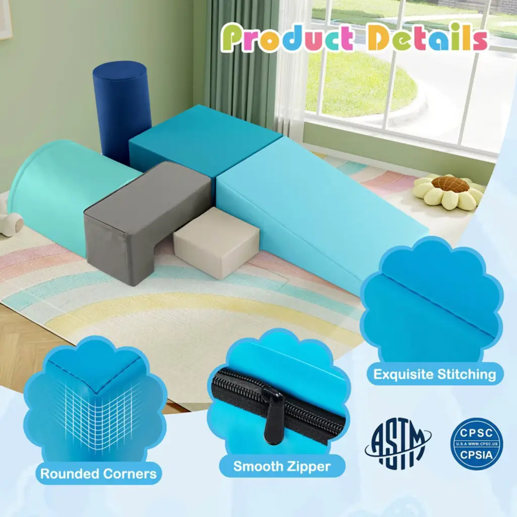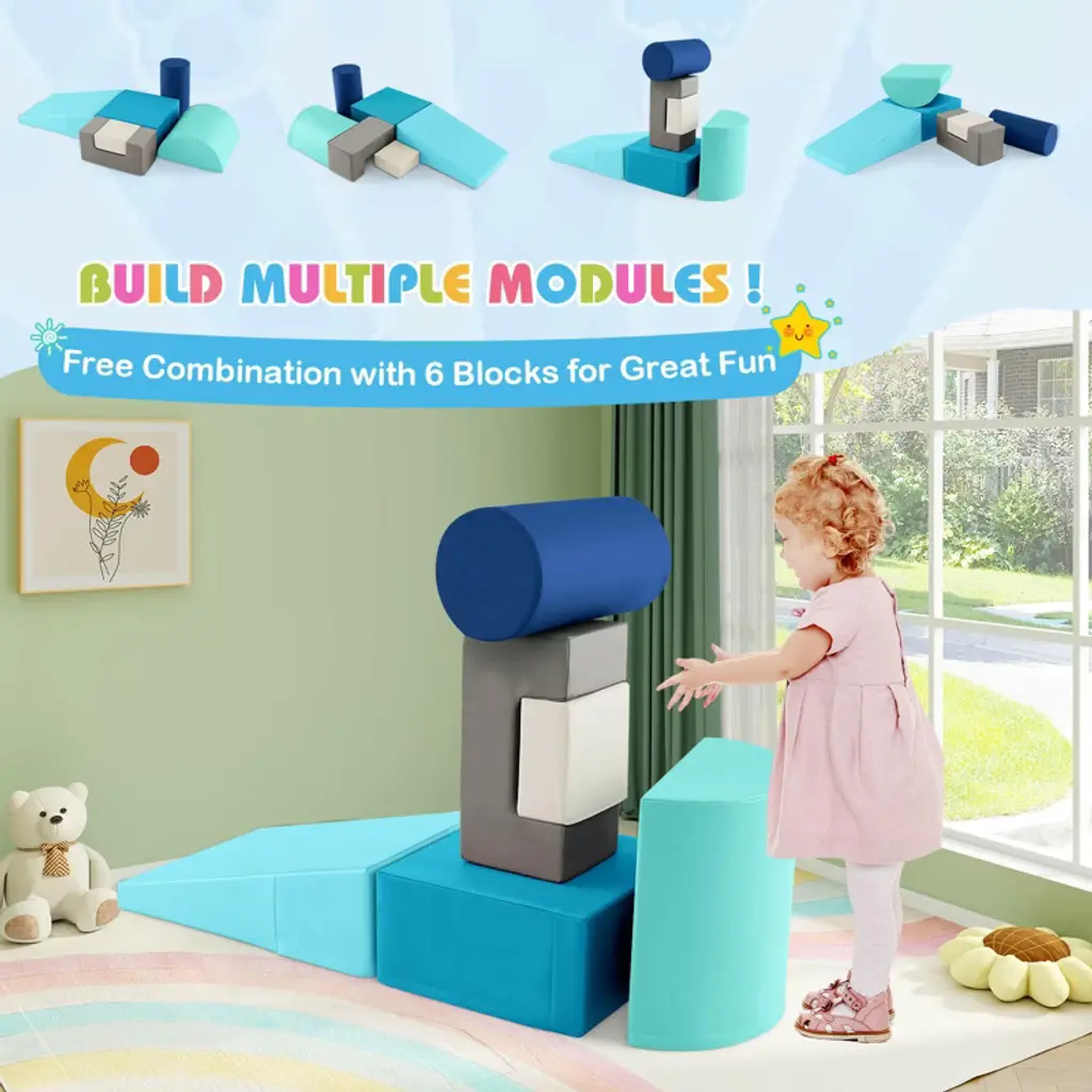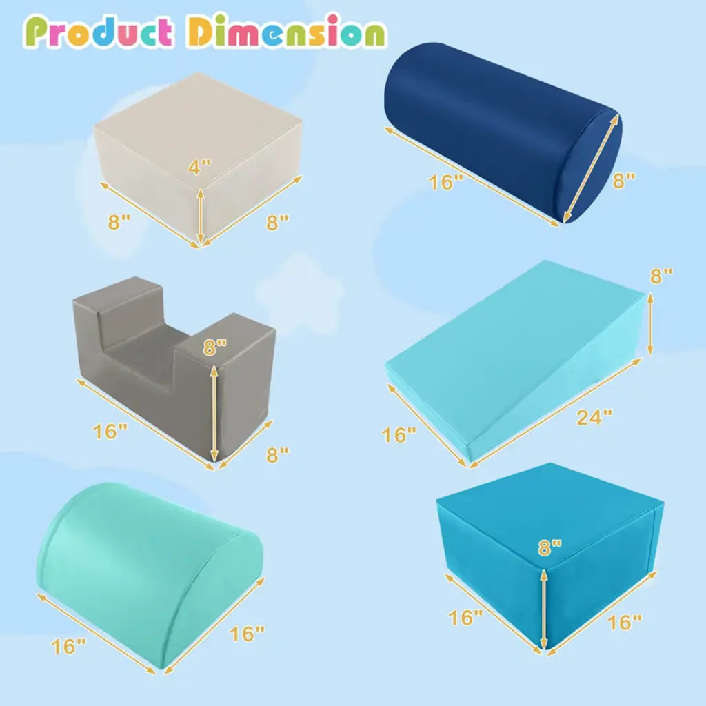 Our indoor soft foam climber play set is a perfect addition to your child's playtime routine. Made from high-quality, skin-friendly soft foam blocks, this play set ensures the safety and comfort of your child. The waterproof PU cover and safe EPE foam with ASTM and CPSI certification guarantee a worry-free playtime experience. This play set includes 6 fun shapes - large rectangle, wedge, cylinder, half-moon, concave, and small rectangle. It can be combined in various ways to create multiple modules, sparking your child's creativity and imagination. Looking for the perfect gift for your child? Look no further. Our toddler climbing toys provide endless fun, stimulation, and entertainment. Give your child the gift of play and endless possibilities with the toddler climbing toys.FeaturesSkin-friendly and safe material for your child's comfort and safety PU cover and safe EPE foam with ASTM and CPSI certification Free combination with 6 blocks for great fun Rounded corners for added safety Stimulate your child's development by promoting physical skills and creativity. Zippered cover is easily removable for deep cleaning Easy-to-clean surface for easy maintenance Perfect gift at your home, daycare, classroom, or anywhere elseColor: Multicolor Materials: PU, EPE Dimension of Large Rectangle: 16" x 16" x 8" (L x W x H) Dimension of Wedge: 24" x 16" x 8" (L x W x H) Dimension of Cylinder: 8" x 16"(Dia. x H) Dimension of Half-moon: 16" x 16" (Dia. x H) Dimension of Concave: 16" x 8" x 8" (L x W x H) Dimension of Small Rectangle: 8" x 8" x 4" (L x W x H) Total Net Weight: 7.5 lbs Suitable Ages: 1-3 Years Old Package Includes: 1 x Large Rectangle 1 x Wedge 1 x Cylinder 1 x Half-moon 1 x Concave 1 x Small Rectangle