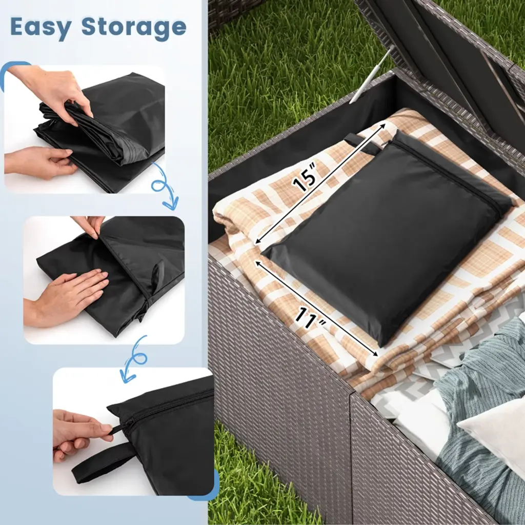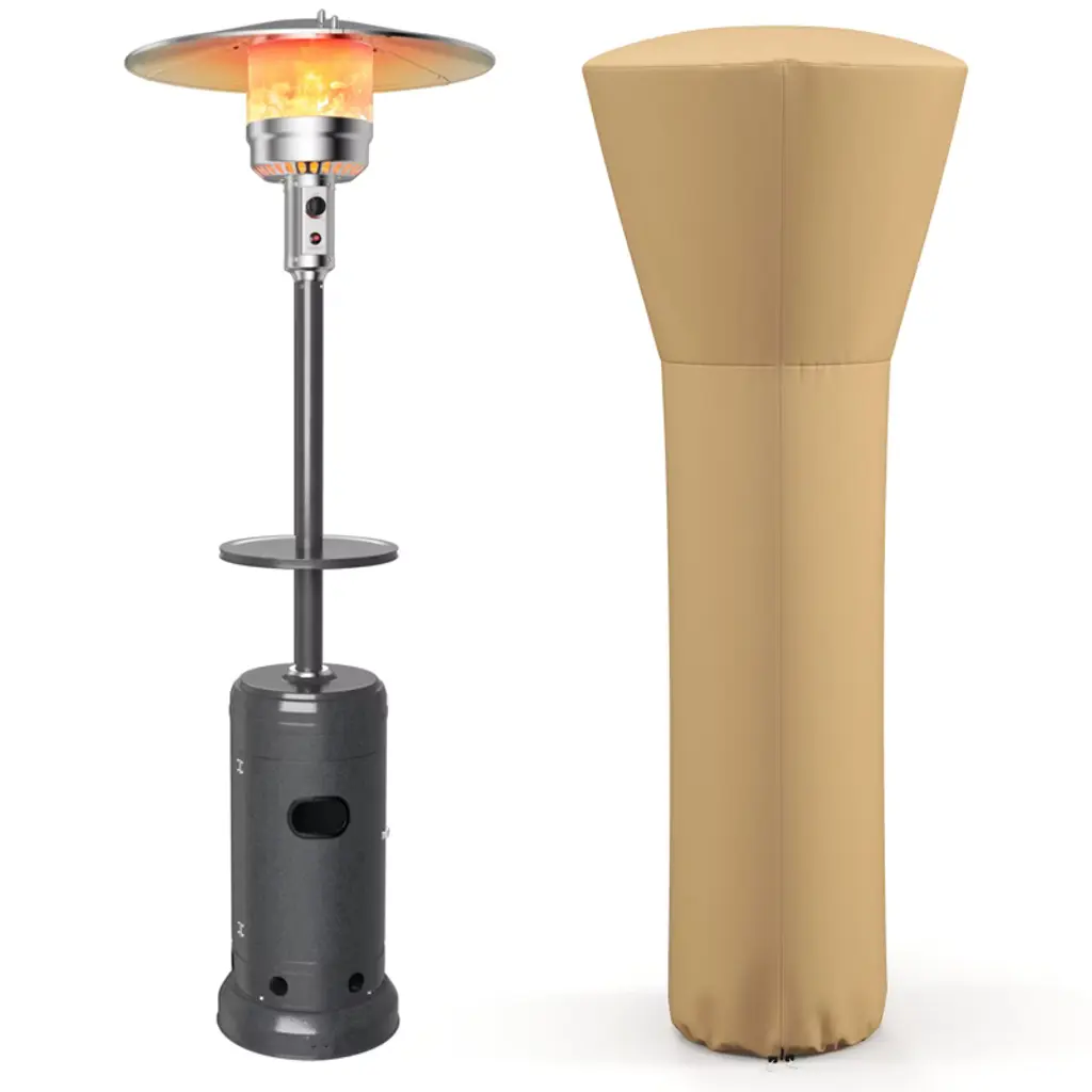 Our patio heater cover is specifically designed to shield your heater from any unwanted elements, ensuring it remains in pristine condition all year round! Composed of waterproof & sun-protective exterior layer, sturdy Oxford cloth and waterproof & sun-protective silver coating, this outdoor heater cover is built to resist everything nature throws at it. Moreover, the convenient zipper allows you to cover and uncover this heater cover with ease. And the adjustable drawstrings make this propane heater cover fit your patio heater perfectly. But that's not all! We strive to offer convenience at every step, so we have included a storage bag. This handy bag allows you to safely store the heater cover when it's not in use, preventing misplacement or damage. Keep everything organized and compact, making your life easier. Note: Not suitable for washing in a washing machine. Not suitable for drying in a tumble dryer.FeaturesFit most standard-sized outdoor propane heaters with 87"H x 34"D x 19"B sturdy Oxford cloth with waterproof silver coating for selected material Protect your heater from rust with waterproof and snow-resistant features Capable of withstanding gusts without tearing or flying off with wind resistance Ensure your heater’s color won’t fade or become dull with sun protection Defense against dirt, pollen, bird droppings and other debris with dustproof Enable easy installation and removal thanks to the full-length zipper Ensure a tight and secure wrap around your heater with adjustable drawstrings Reinforced seams add extra durability Included zippered bag for easy storageColor: Black/Beige Material: Oxford Cloth with Silver Coating Overall Dimension: 87" x 34" x 19" (H x D x B) Dimension of Storage Bag: 15" x 11" (L x W) Net Weight: 1 lbs Package Includes: 1 x Patio Heater Cover 1 x Storage Bag 1 x Instruction