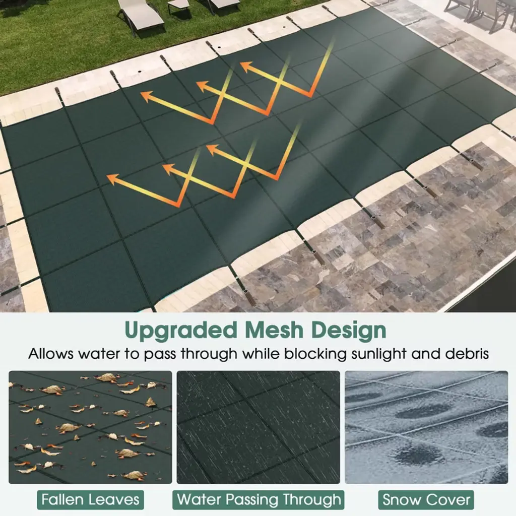 Costway Winter Swimming Leaf Pool Cover Safety Pool Cover For Pool Size: 40 X 20 Ft Green