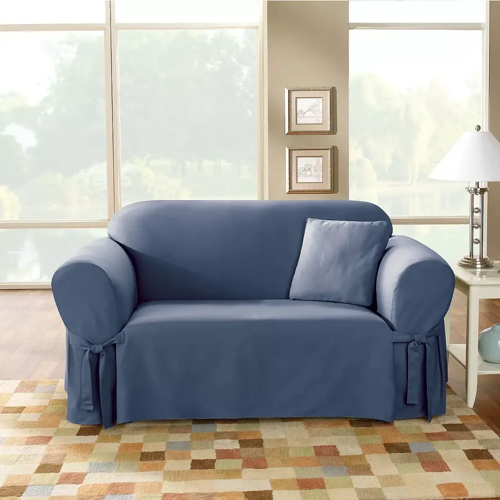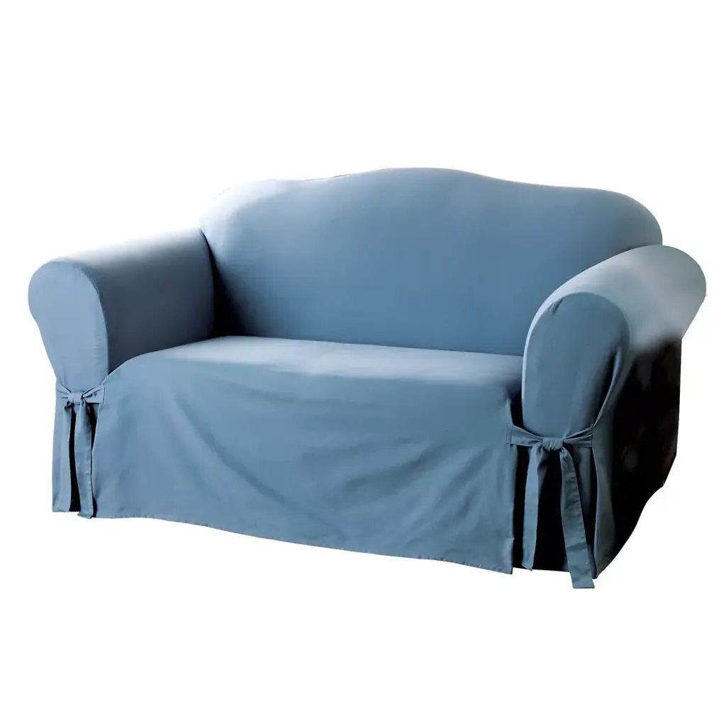 Cotton Sailcloth Duck Sofa Slipcover Blue - Sure Fit: Machine Washable, Indoor Furniture Protector, Box Cushion Fit