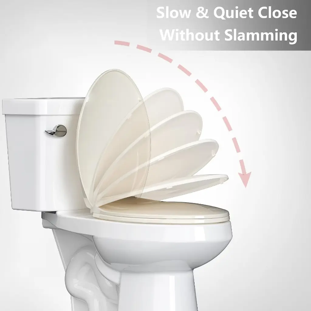 Coucheta Elongated Slow Close Toilet Seat Cover - Quiet, Durable Never-loosen Lid, Easy To Install And Clean, Polypropylene, 19" Almond