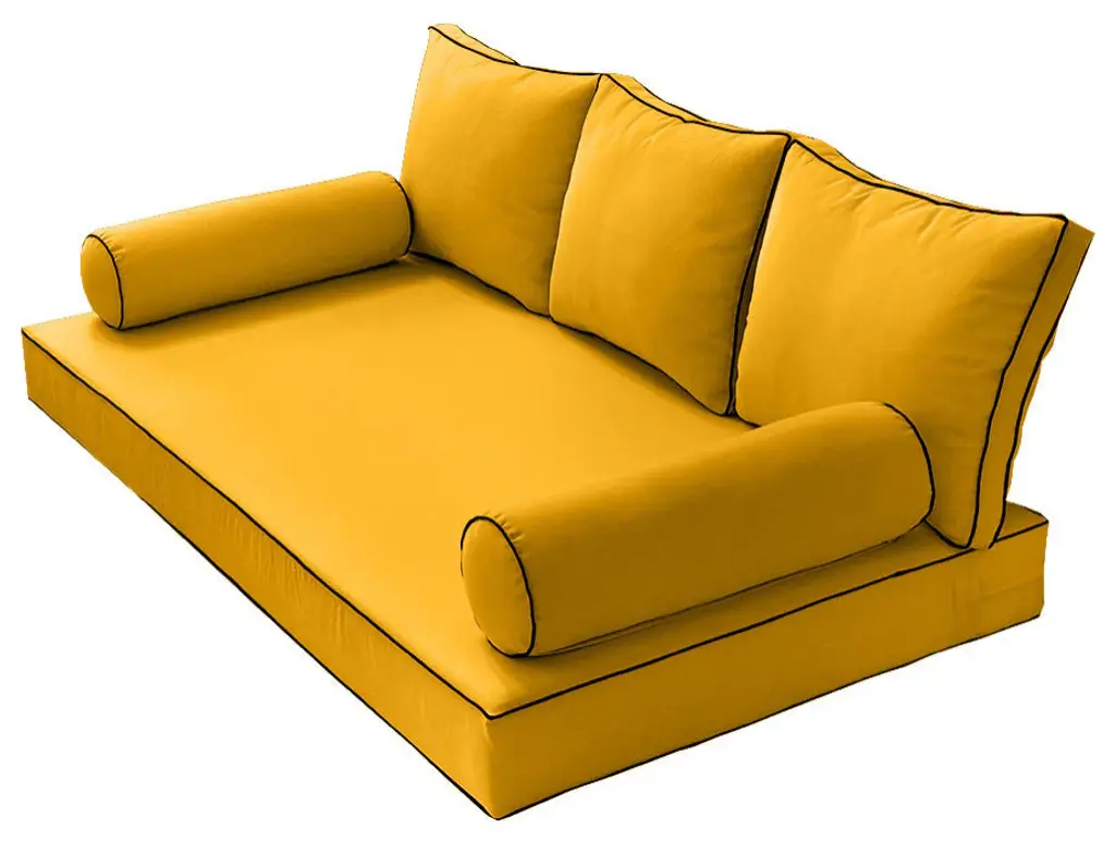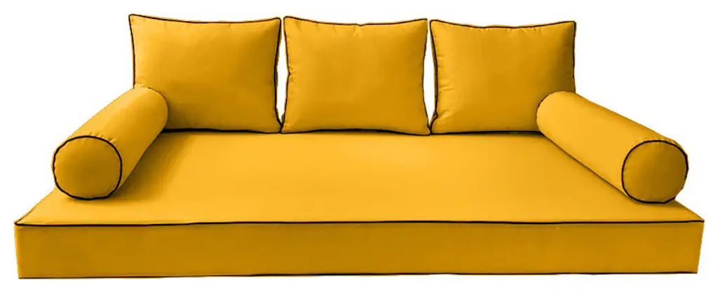 • Style-3 Crib Size 6 PC Contrast Pipe Trim Mattress Bolster Back Cover Only• • Mattress and Insert Not Included• • Fully Encase Cover with Hidden Zipper• 1 x Crib Fitted Sheet Cover Only: 52"x 28" x 6"• 2 x Bolster Pillow Cover Only: 16" x 8"• 3 x Back Pillow Cover Only: 16.5" x 20" x 5"• Color: AD108• Edge Trim: Pipe Trim (contrast color)• Fabric: 230 Gram Polyester Upholstery• Hidden Zipper• Water Repellent • Not Water Proof• • Tips: Please cover or store cushion pillow in rainy season• Cleaning: Soap clean and rinse off with water hose. Outdoor durable!• Quantity: 1
