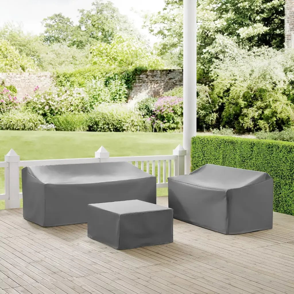 Crosley 3Pc Sectional Cover Set, Loveseat, Sofa And Square Table, Gray: Vinyl Protective Outdoor Furniture Covers