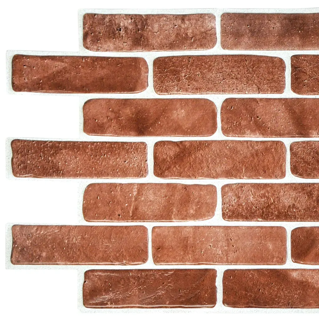 Dark Red Natural Bricks 3D Wall Panels, Set Of 5, Covers 27.2 Sq Ft