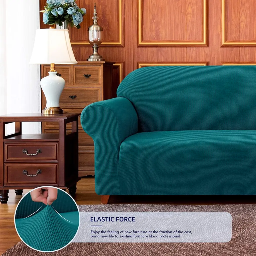 Give any room a whole new look in minutes for a fraction of the cost of re-upholstery. The subtle textured double diamond pattern allows you to make old sofas, loveseats or recliners look like new again. Machine wash. Polyester and spandex. Choose: Burgundy, Chocolate, Beige, Gray, Navy, Blue or Sage. Different sizes available to fit a Recliner (fits up to 82"circ.), Jumbo Recliner (fits up to 92"circ.), Loveseat (fits up to 70"W) or a Sofa (fits up to 92"W) Wing chair (fits up to 42" back height). Recliner and Jumbo Recliner come in 4 pieces. Sofa and Loveseat are one piece.