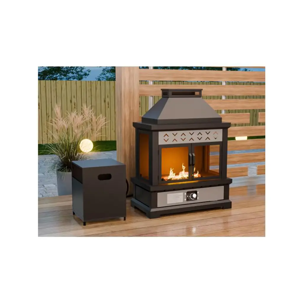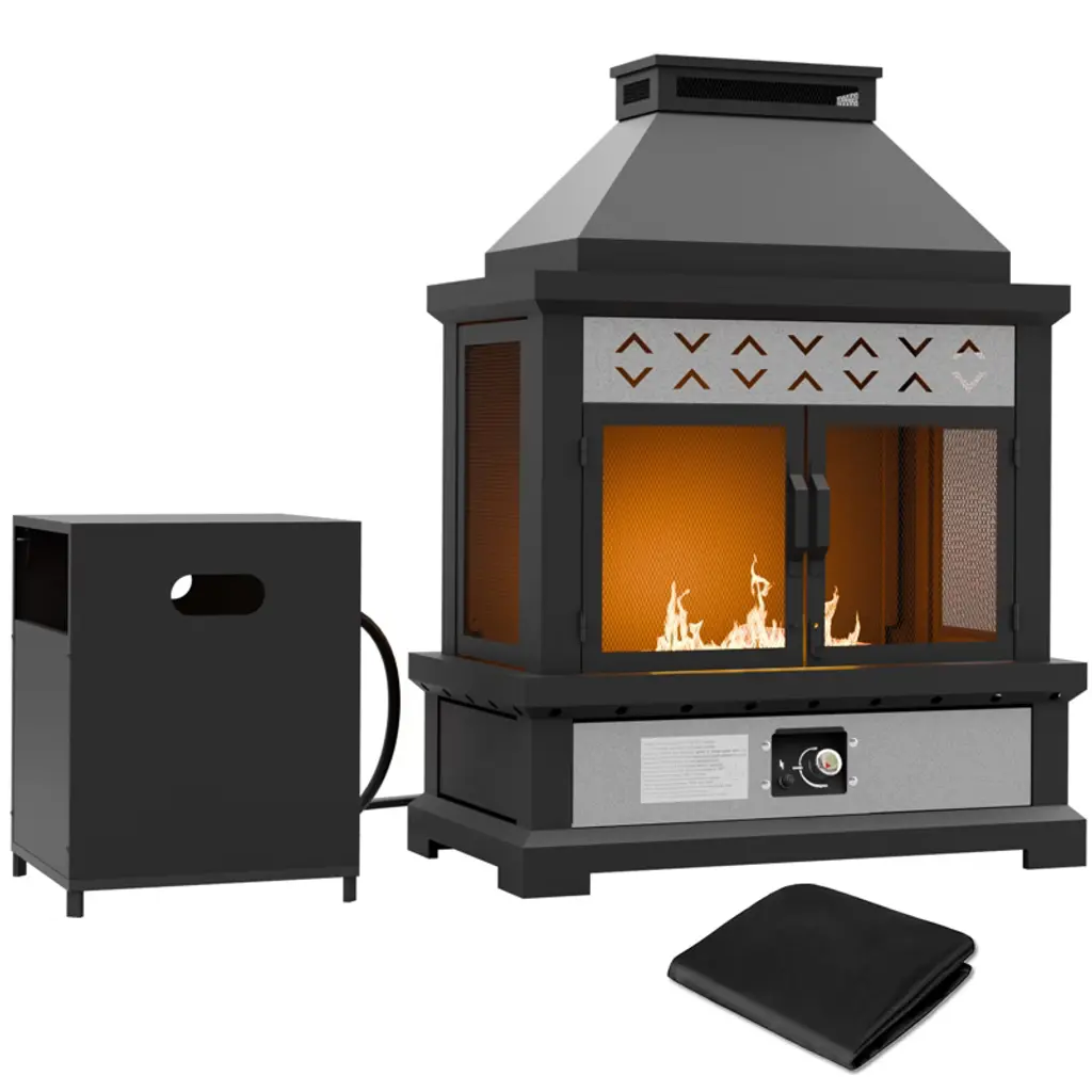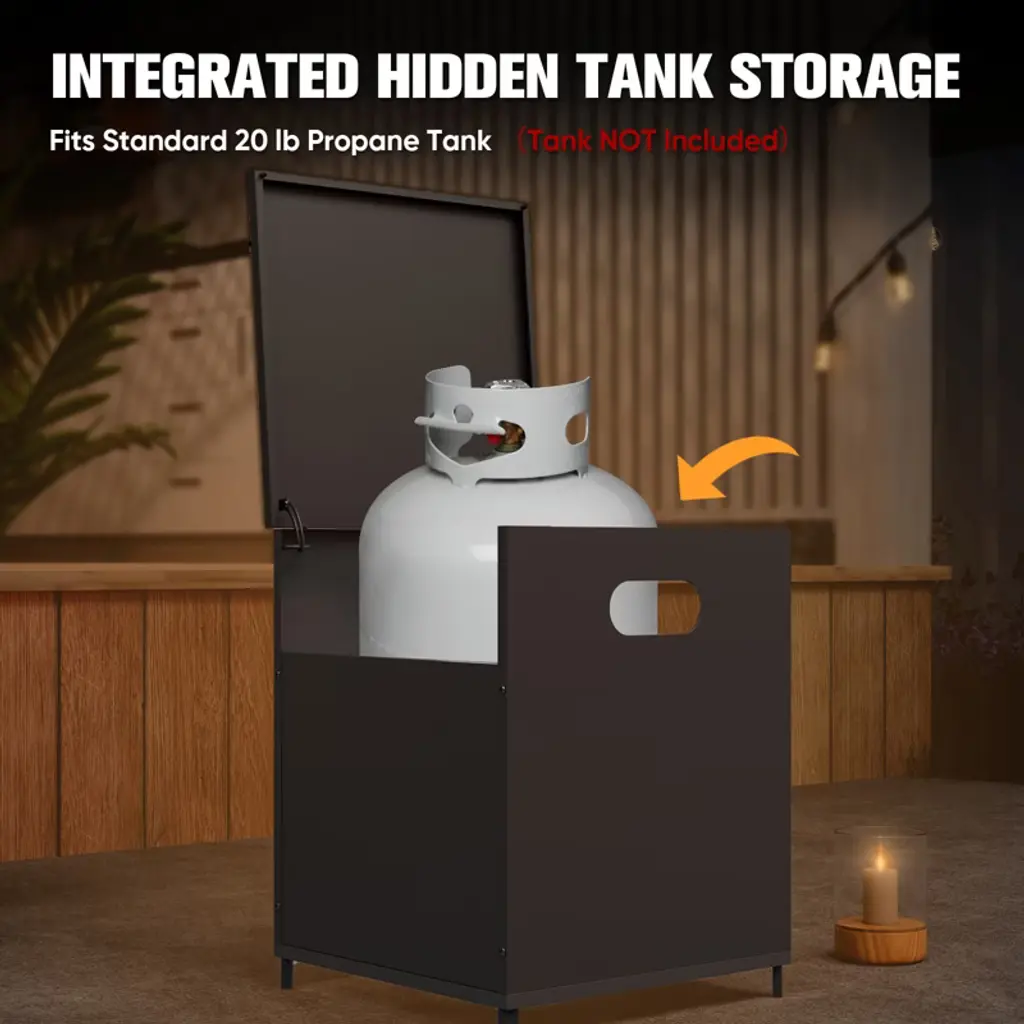Crafted from solid 100% iron construction, this gas fireplace combines exceptional durability with contemporary style. Its sleek smooth heat-transfer finish is protected by a matte black high-temperature powder coating, creating a sophisticated look that complements both modern and traditional spaces. The included multi-functional tank table serves dual purposes: it discreetly conceals the propane tank while providing a practical surface for drinks and snacks - perfect for entertaining. With its powerful 50,000 BTU single-row burner, this fireplace delivers instant, robust heating without any of the hassles of traditional fireplaces - no smoke, no ash, and no exhaust to worry about.