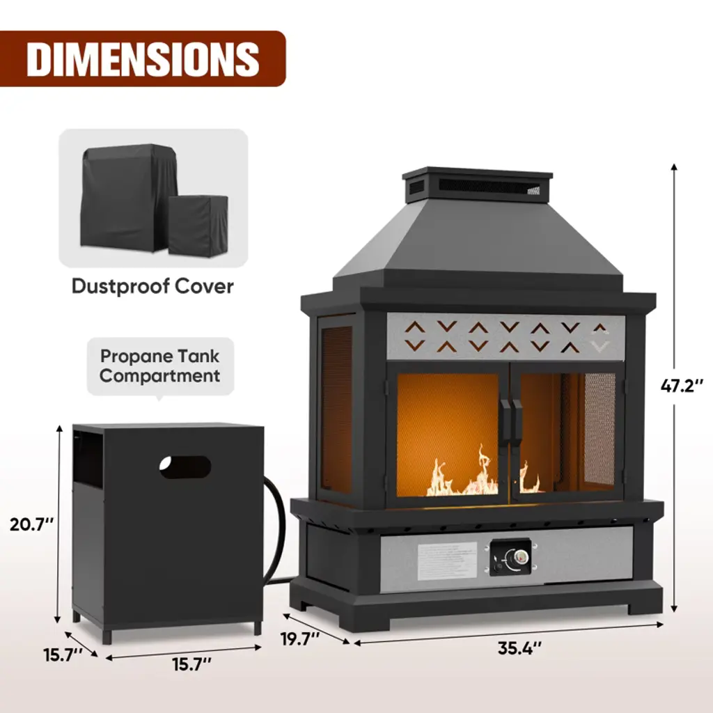 Eagle Peak Outdoor Patio Propane Gas Fireplace W/ Side Table Tank & Pvc Cover 50,000 Btu