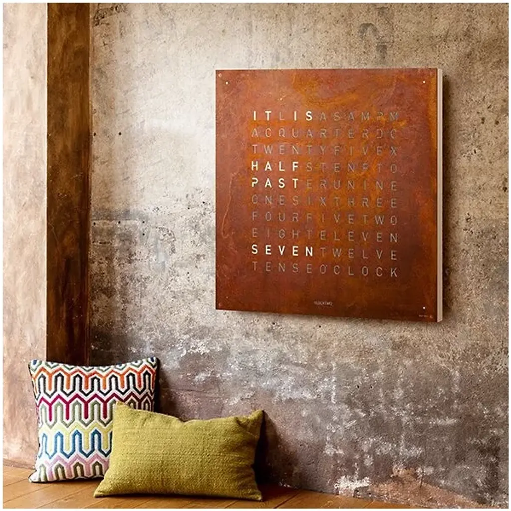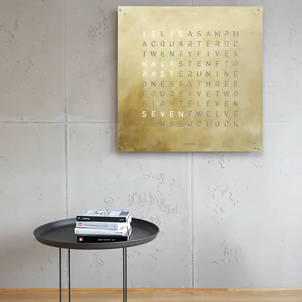 The EARTH 45 CREATOR´S EDITION TIMECHECK Front Cover dresses up your current typographical timepiece, allowing your QLOCKTWO Creator’s Edition to match or contrast its environment. Strong magnets offer an easy way to refresh this practical and beautiful piece, displaying the time of day in words through a matrix of letters. Handcrafted finishes keep each Creator’s Edition front cover truly unique, adding some customized flair to your favorite contemporary QLOCKTWO clock.