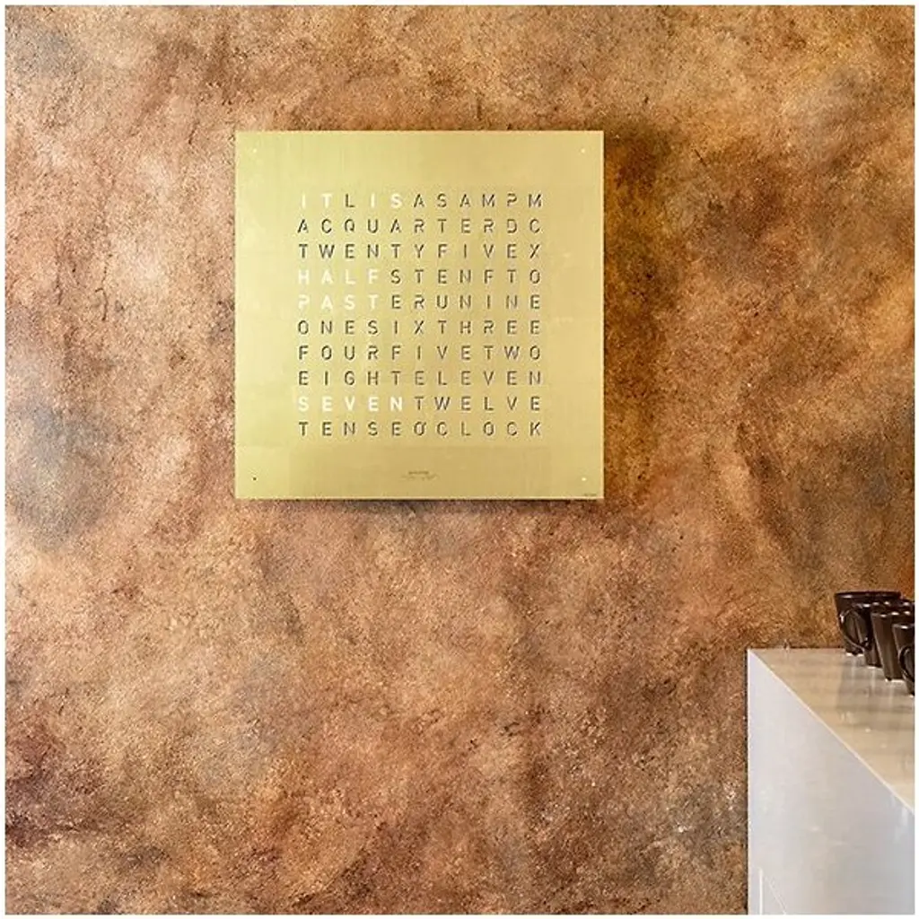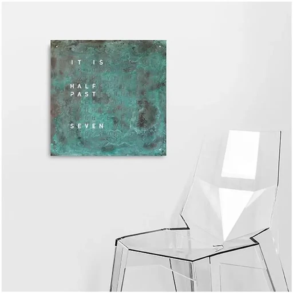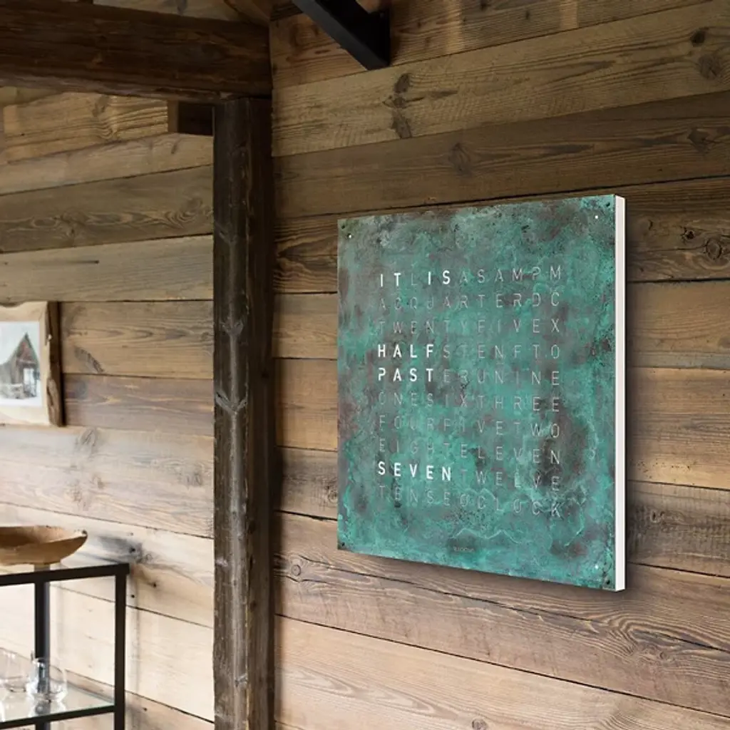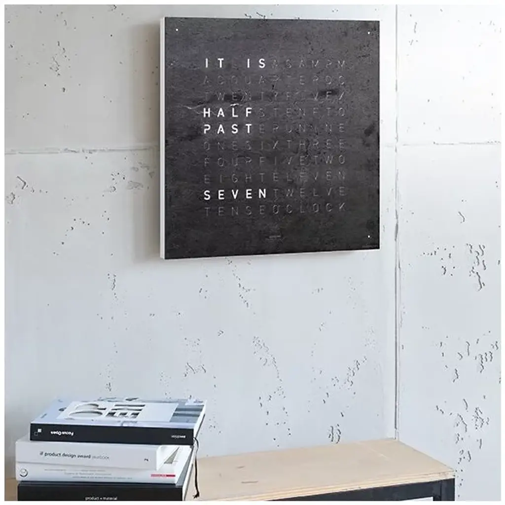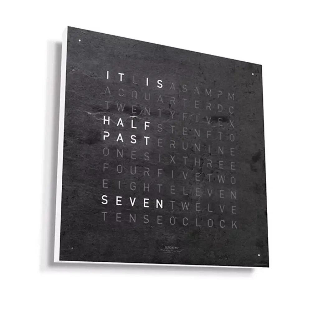 The EARTH 45 CREATOR´S EDITION TIMECHECK Front Cover dresses up your current typographical timepiece, allowing your QLOCKTWO Creator’s Edition to match or contrast its environment. Strong magnets offer an easy way to refresh this practical and beautiful piece, displaying the time of day in words through a matrix of letters. Handcrafted finishes keep each Creator’s Edition front cover truly unique, adding some customized flair to your favorite contemporary QLOCKTWO clock.