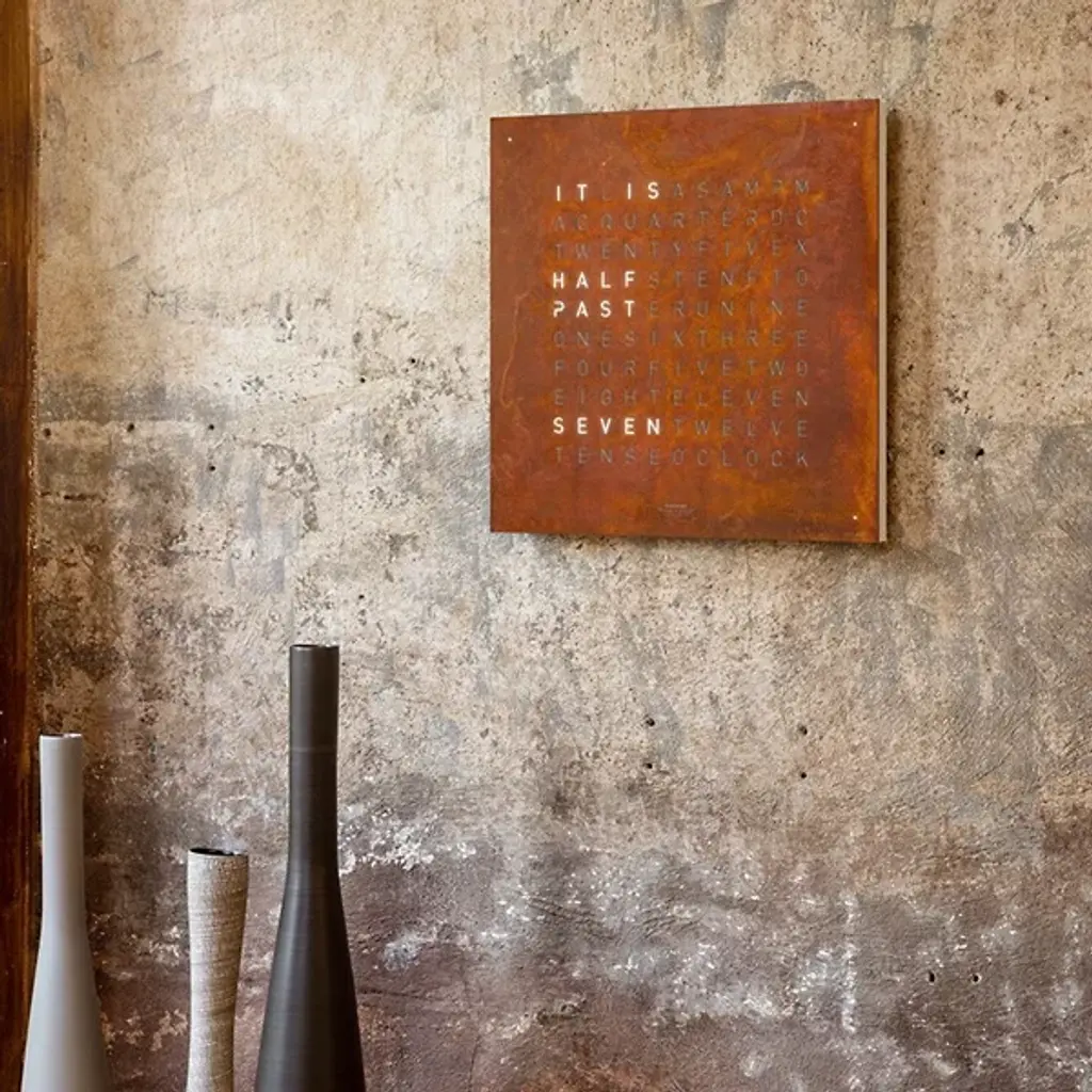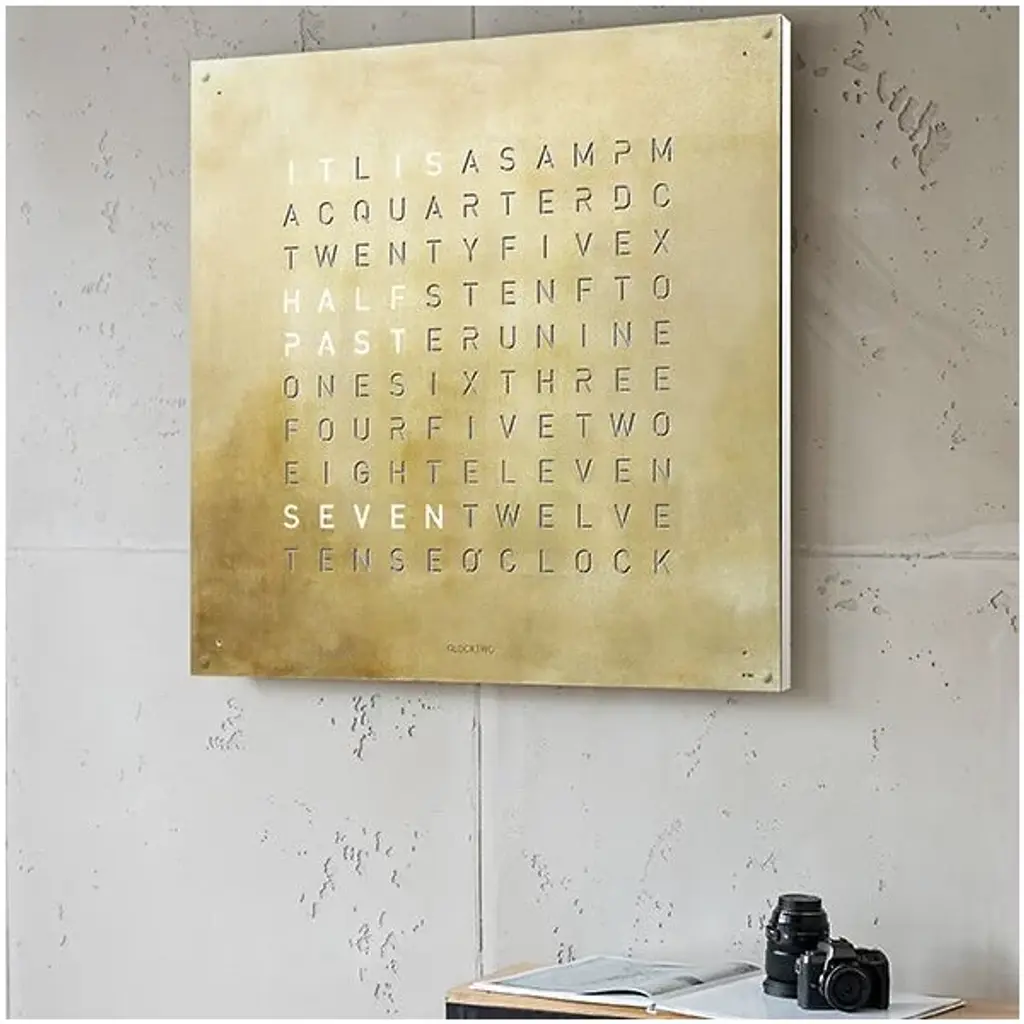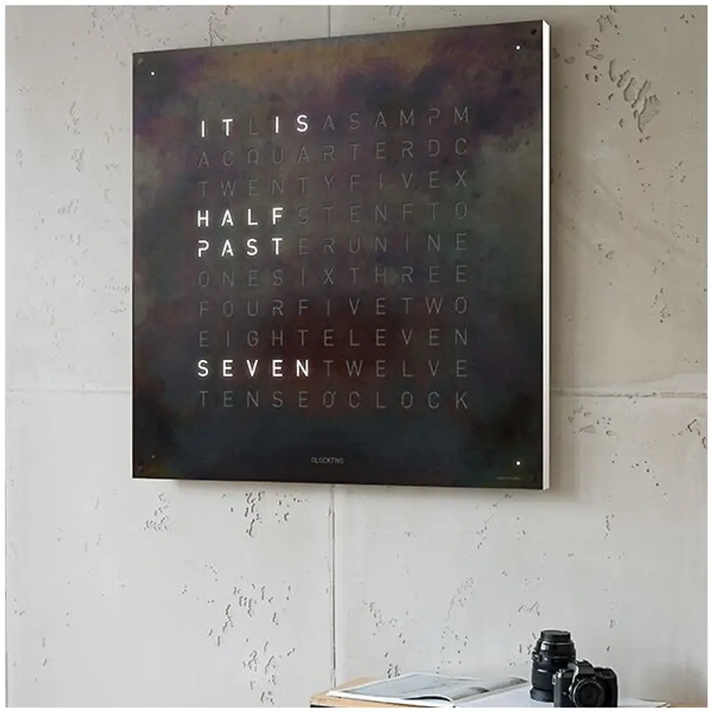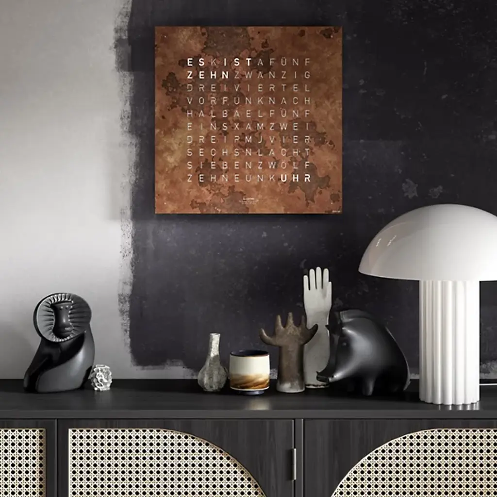 The EARTH 45 CREATOR´S EDITION TIMECHECK Front Cover dresses up your current typographical timepiece, allowing your QLOCKTWO Creator’s Edition to match or contrast its environment. Strong magnets offer an easy way to refresh this practical and beautiful piece, displaying the time of day in words through a matrix of letters. Handcrafted finishes keep each Creator’s Edition front cover truly unique, adding some customized flair to your favorite contemporary QLOCKTWO clock.